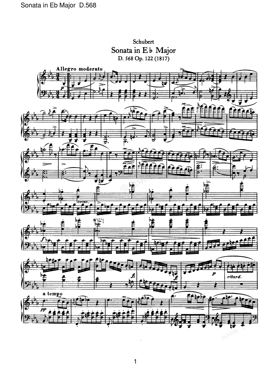 降E大调第七钢琴奏鸣曲 Piano Sonata No.7 in E-flat Major Op.122 D.568