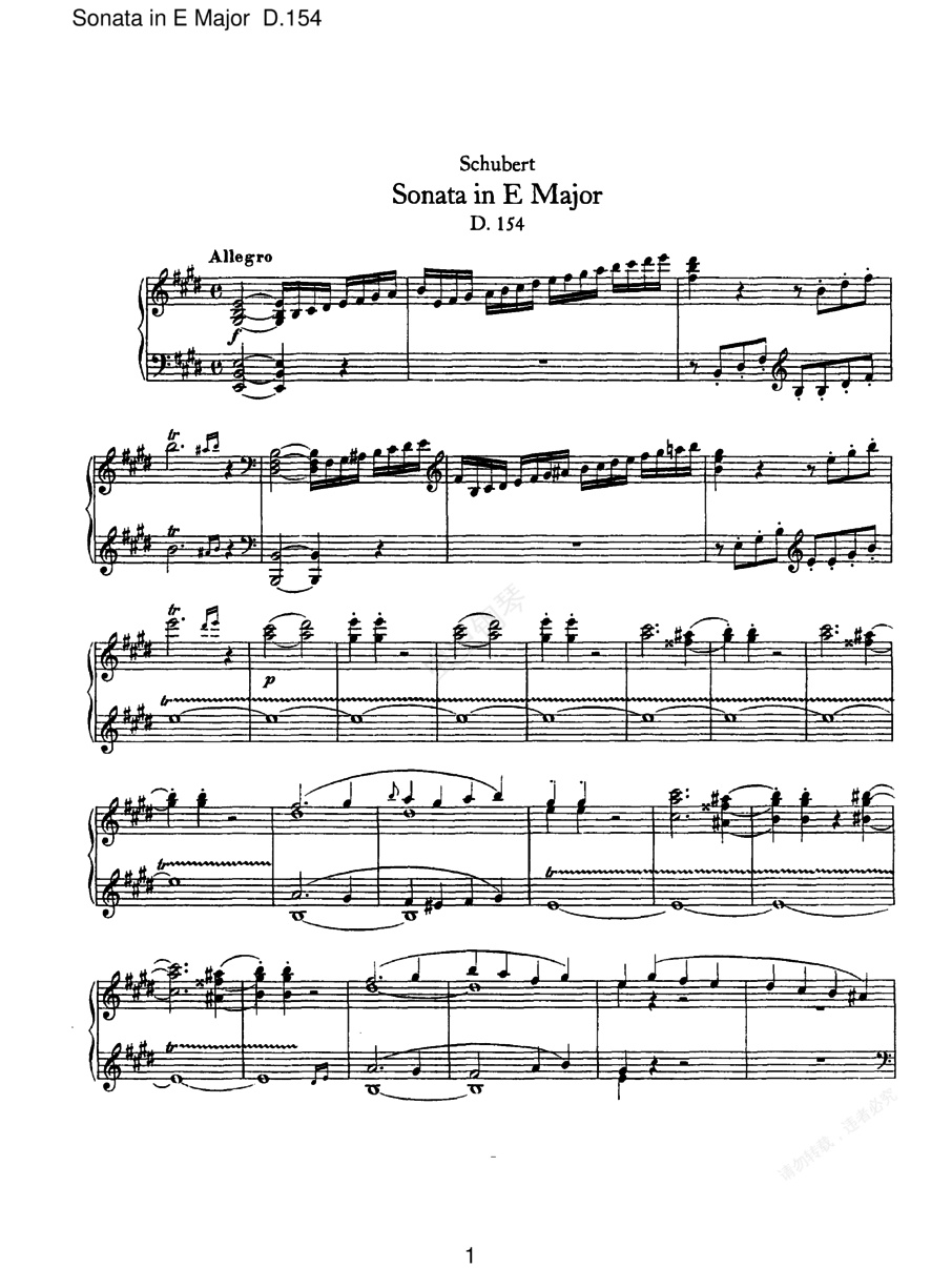 您的位置: 首页 > 钢琴谱库 > E大调钢琴奏鸣曲(未完成)Piano Sonata in E Major D.154