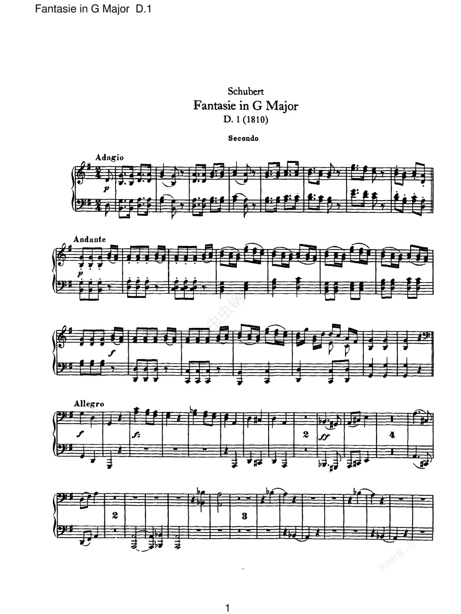 钢琴谱:G大调幻想曲 Fantasie in G Major D.1 - 四手联弹