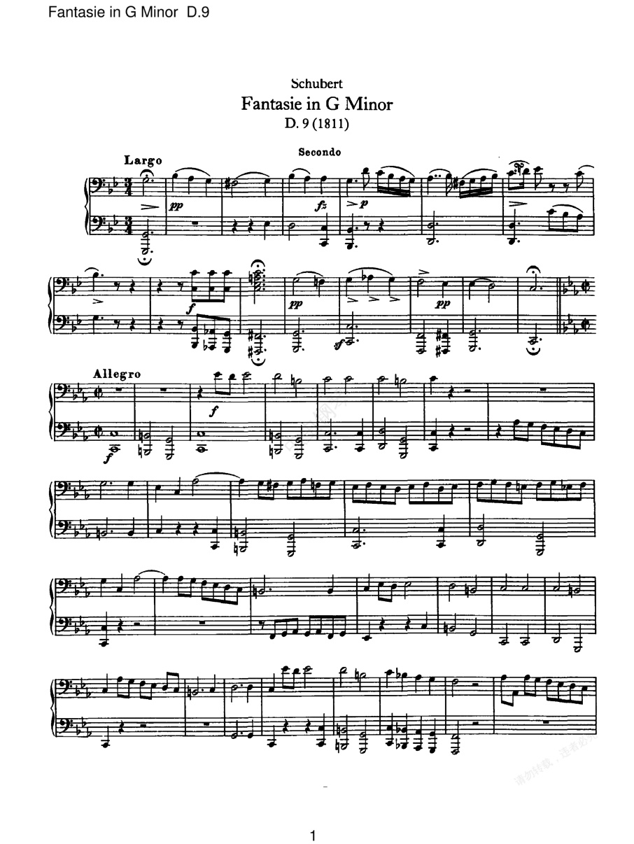 钢琴谱:g小调幻想曲 Fantasie in g Minor D.9 - 四手联弹