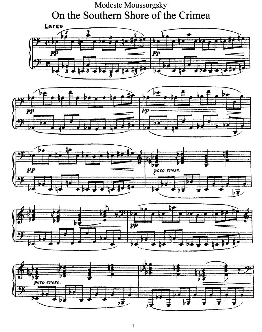 钢琴谱:靠近克里米亚南岸 Near the Southern Shore of the Crimea(Moussorgsky Near the Southern Shore of the Crimea (alt))