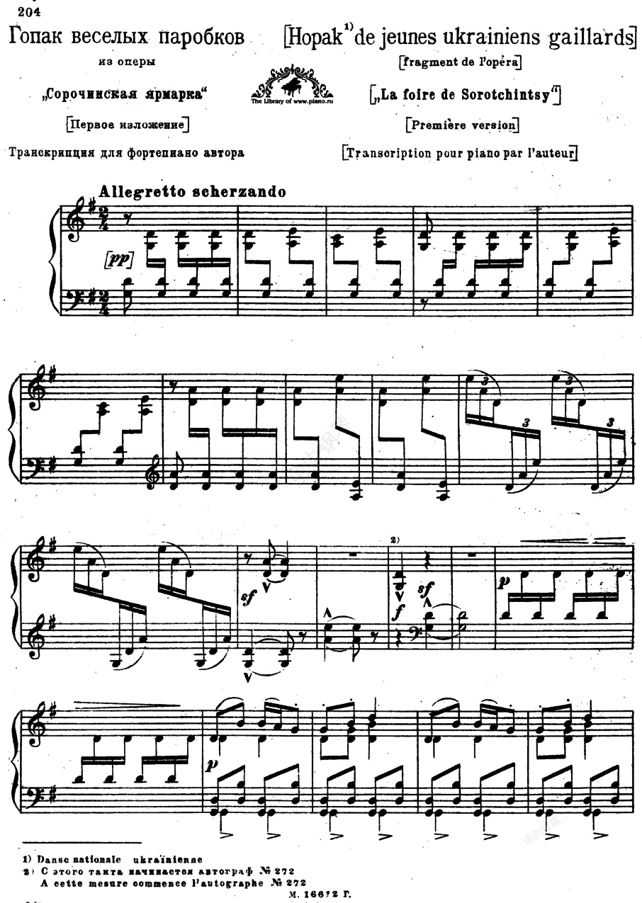 钢琴谱:戈帕克舞曲 Gopak - 选自歌剧《索罗钦集市》(Moussorgsky钢琴小品《戈帕克舞曲》 - Hopak de jeunes akraniens gaillards)