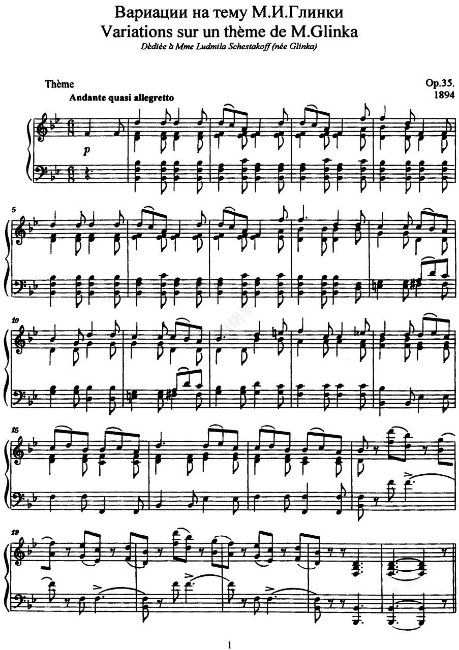 您的位置: 首页 > 钢琴谱库 > 格林卡主题变奏曲 Variations on a Theme of Glinka Op.35