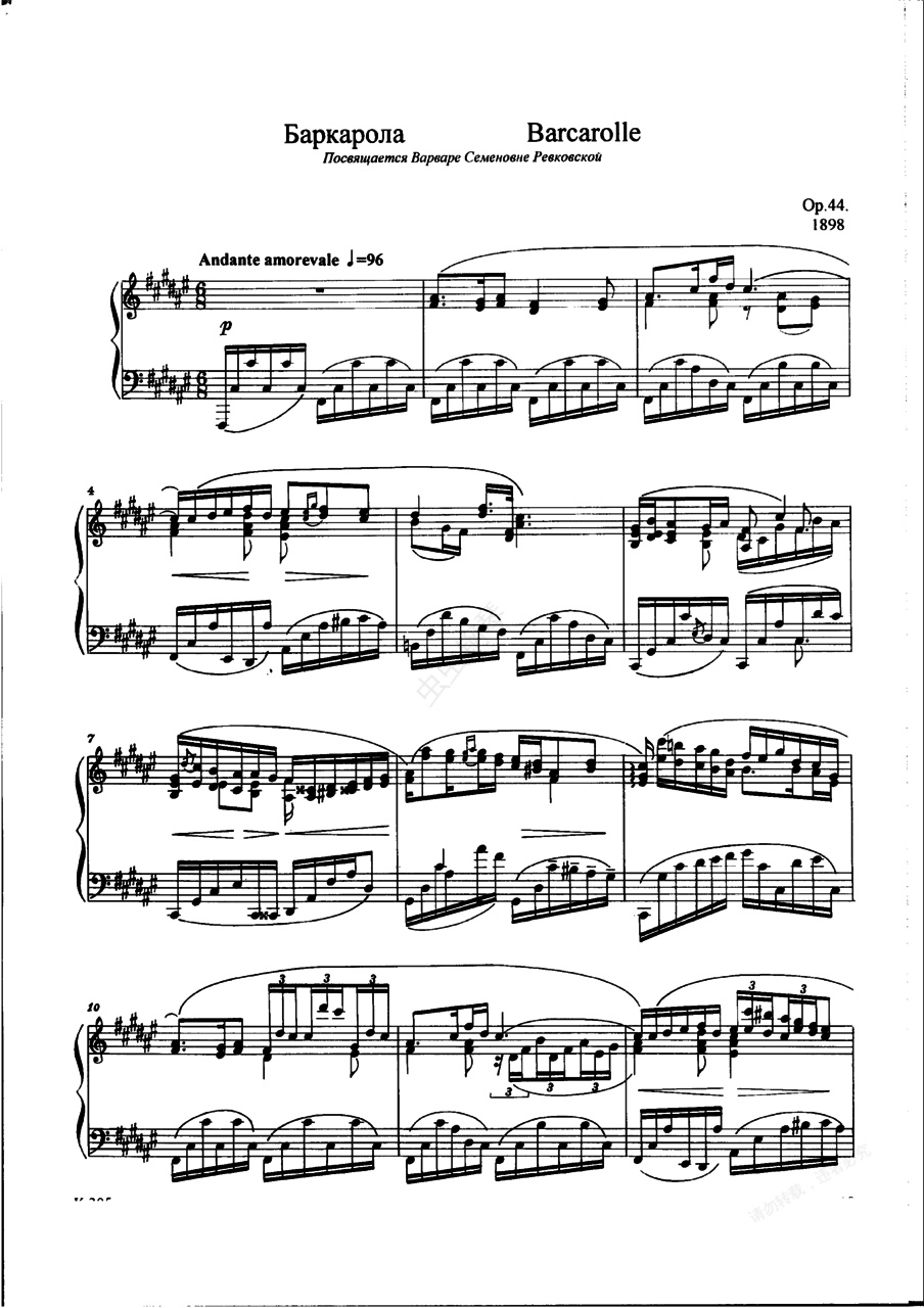 钢琴谱:升F大调船歌 Barcarolle in F-Sharp Major Op.44