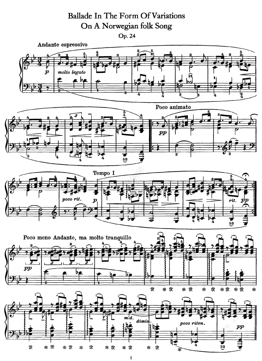 挪威民歌变奏叙事曲 Ballade on a Norwegian Folk Song Op.24