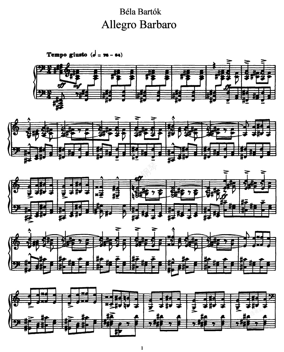 钢琴谱:粗犷的快板 Allegro Barbaro Sz.49