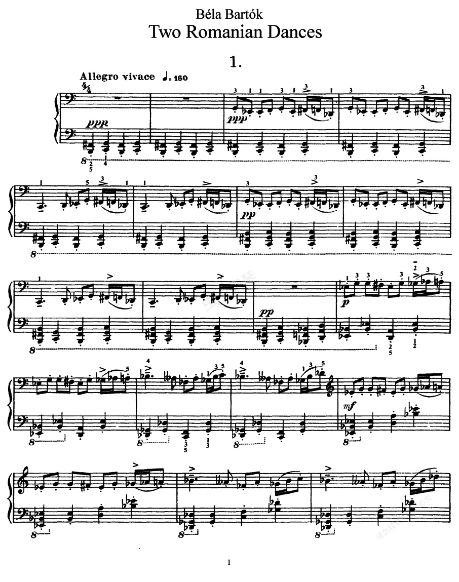 钢琴谱:2首罗马尼亚舞曲 Two Romanian Dances Op.8a
