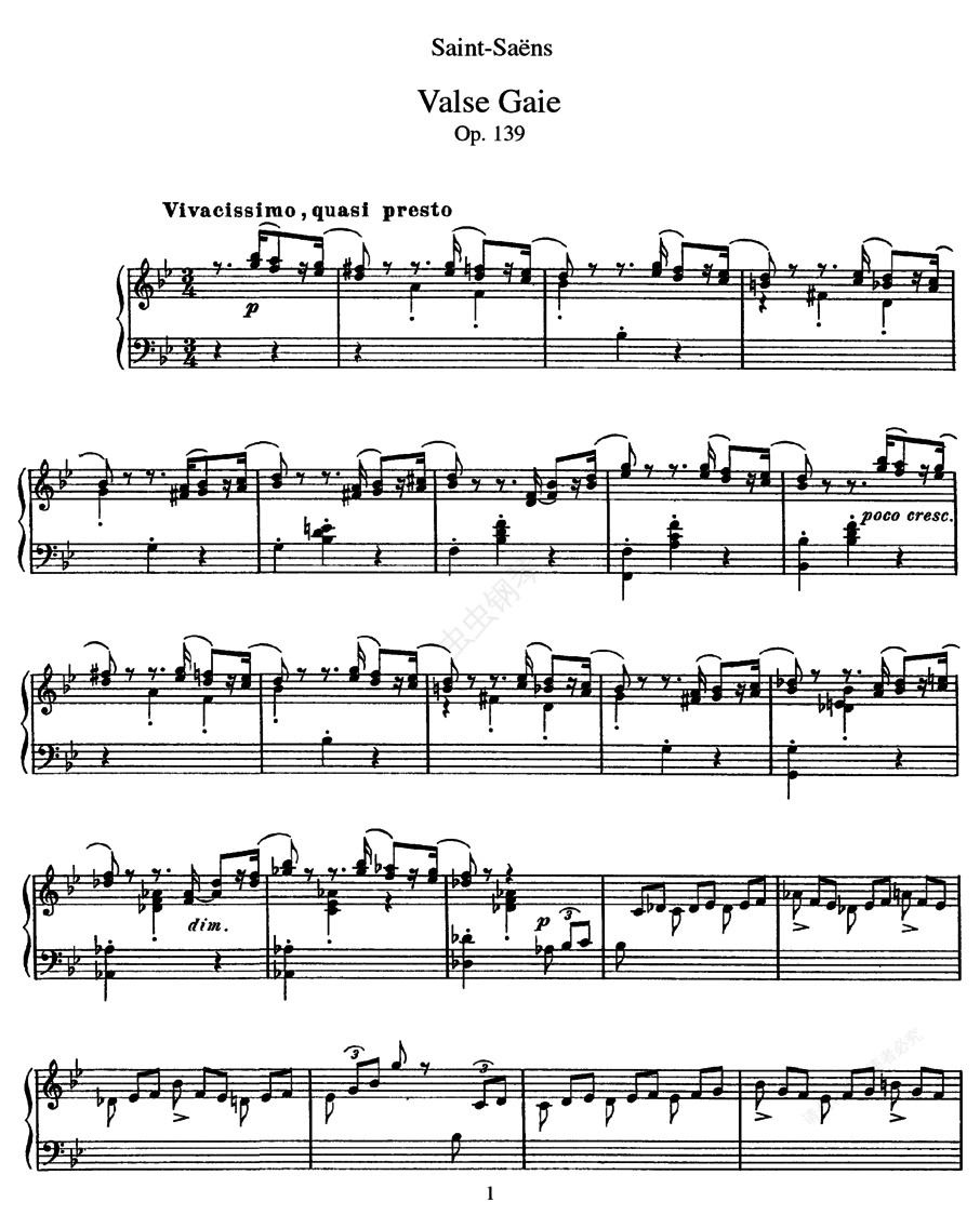 钢琴谱:欢乐圆舞曲 Valse Gaie Op.139