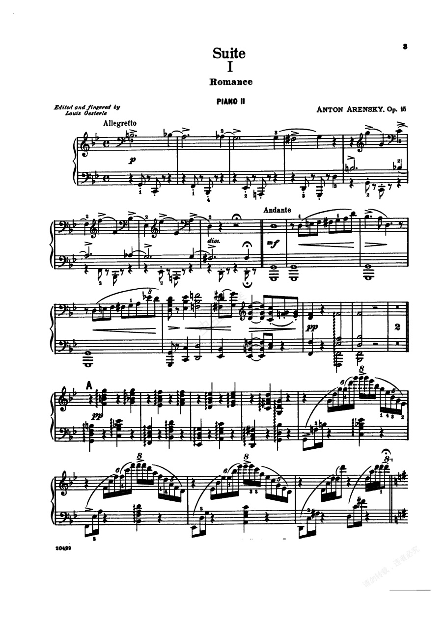 钢琴谱:g小调第一组曲 Suite No.1 in g Minor Op.15 - 双钢琴(Arensky op15 Suite for Two Pianos (secondo))