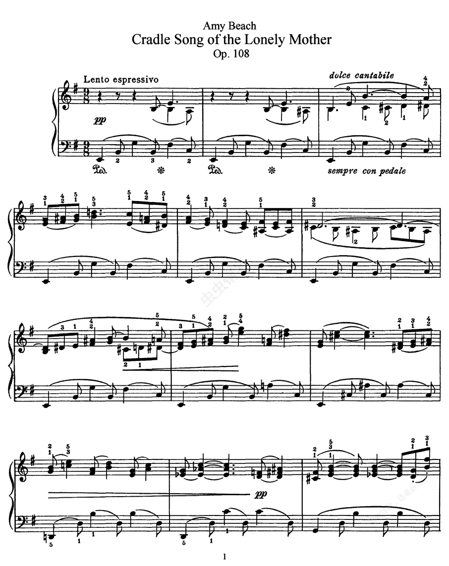 钢琴谱:Beach op108 Cradle Song of the Lonely Mother