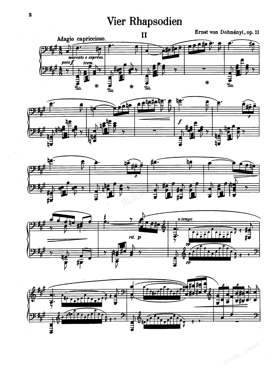 钢琴谱:4首狂想曲 Four Rhapsodies Op.11(Dohnányi (1904) op11n2 4 Rhapsodies)