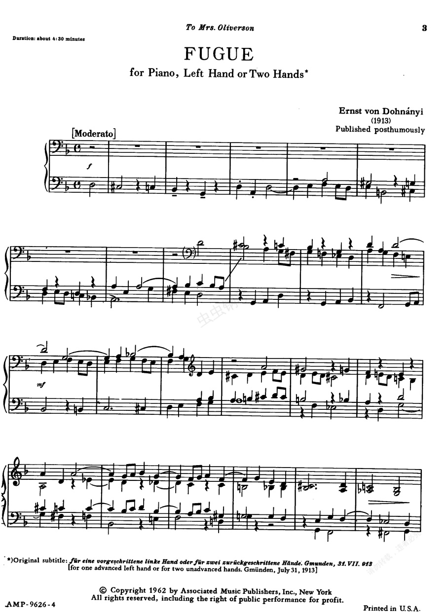 钢琴谱:为左手而做的赋格 Fugue for the left hand only