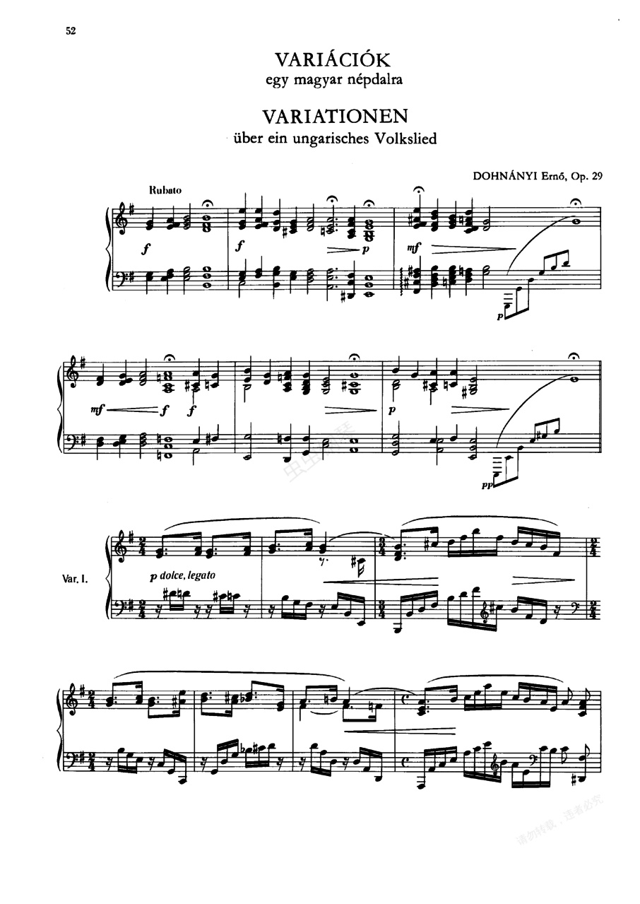 钢琴谱:匈牙利民歌变奏曲Variations on a Hungarian Folk Song op29