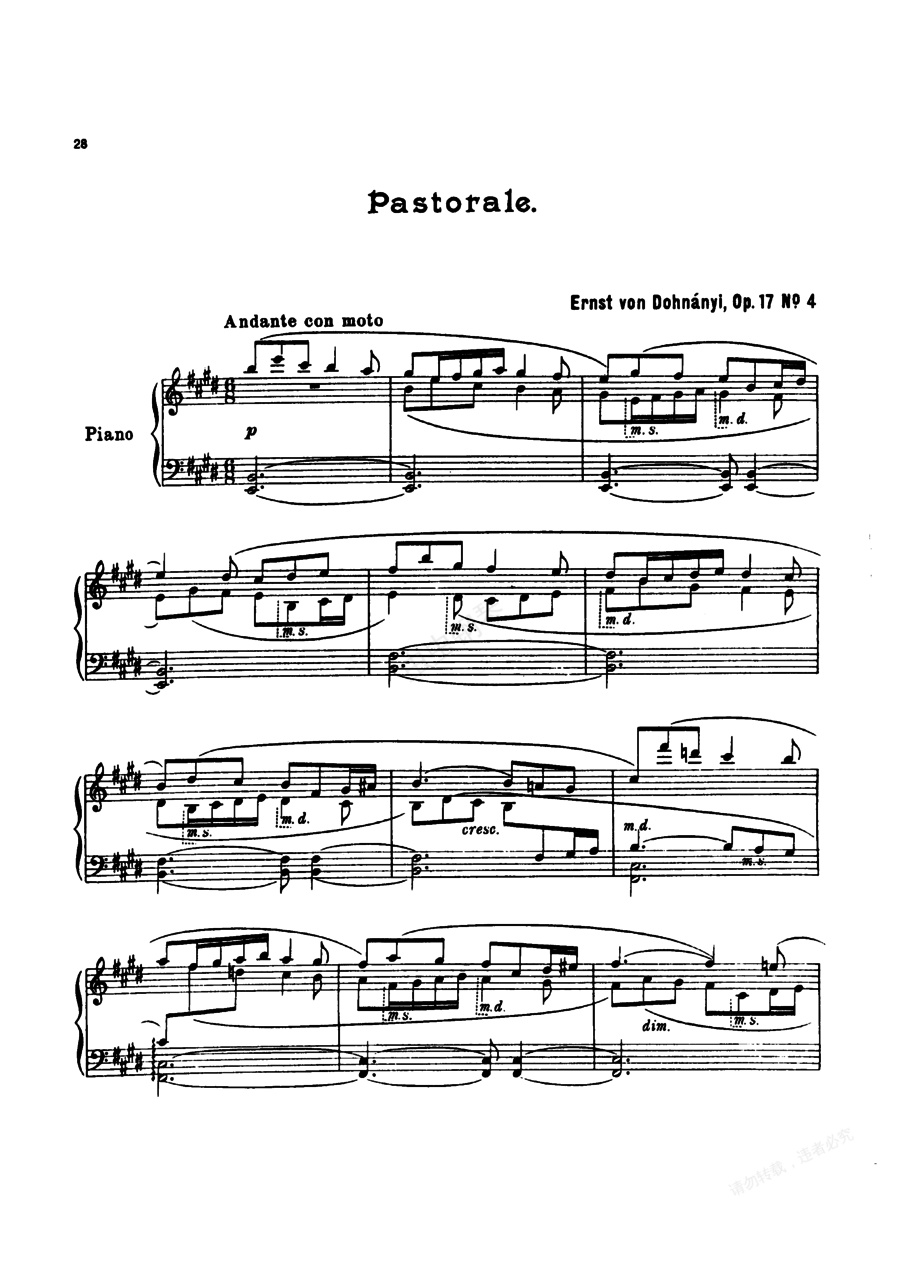 钢琴谱:Humoresken op17(Dohnányi op17 Humoresken — Pastorale)
