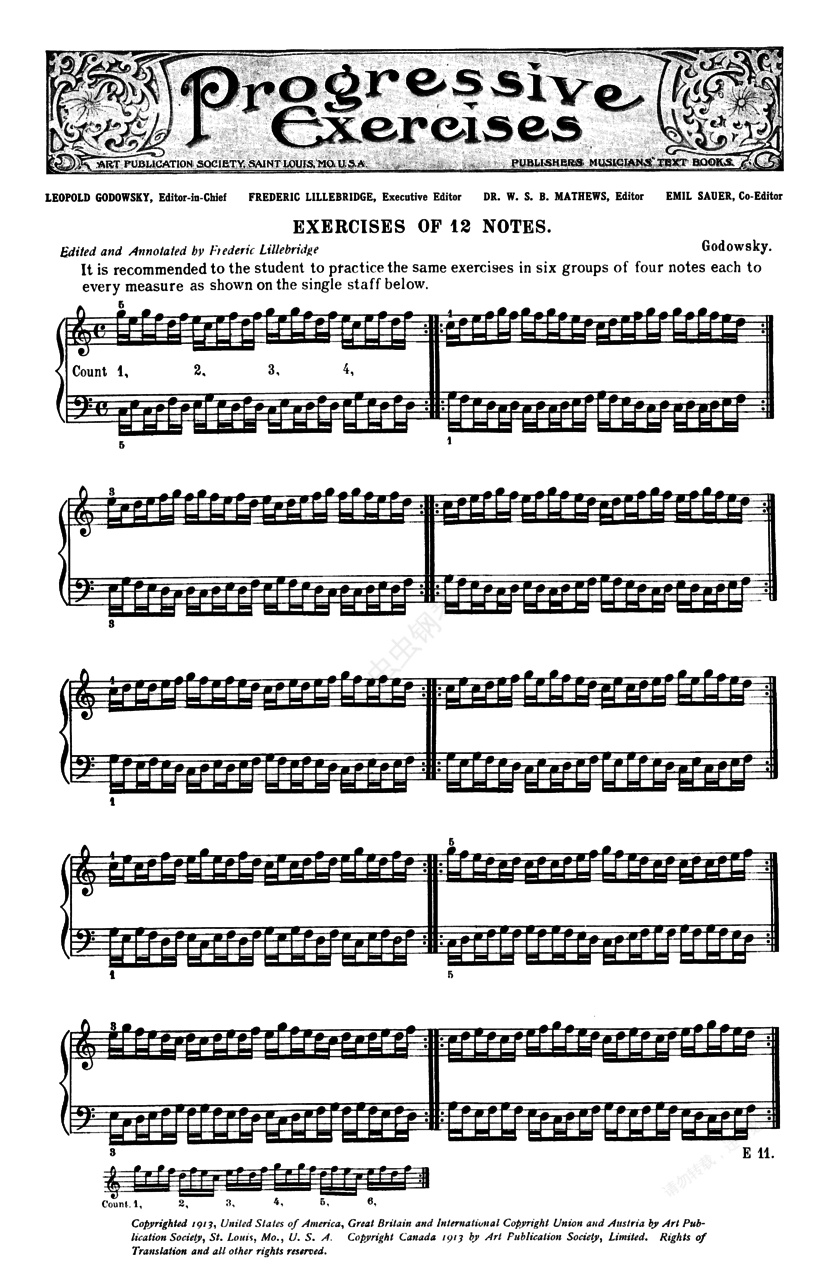 钢琴谱:手指练习 Godowsky Exercises(Godowsky Exercises of 12 Notes)
