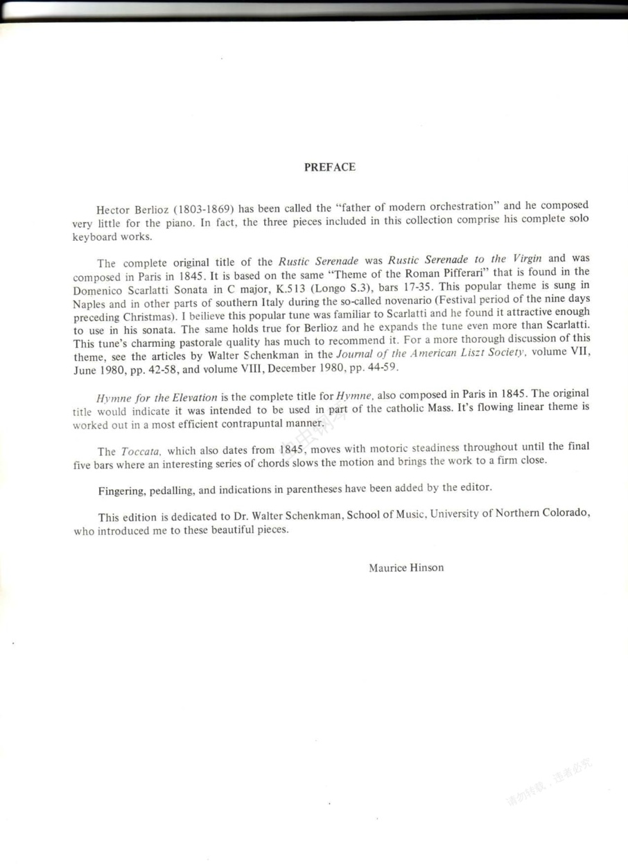 柏辽兹一生仅有的三首钢琴作品:乡村小夜曲,庄严的颂歌,托卡塔