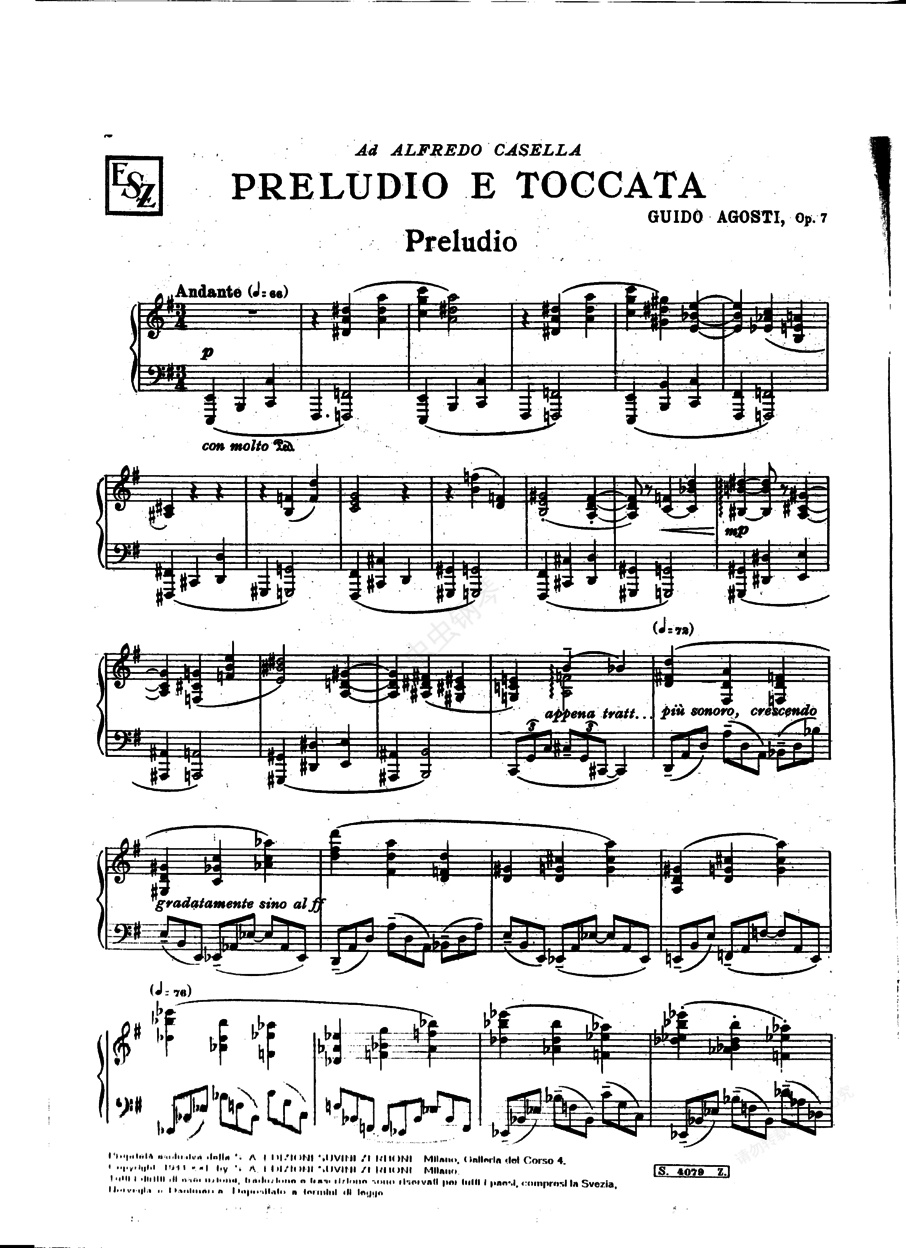 钢琴谱:前奏曲与托卡塔 Preludio e Toccata op7