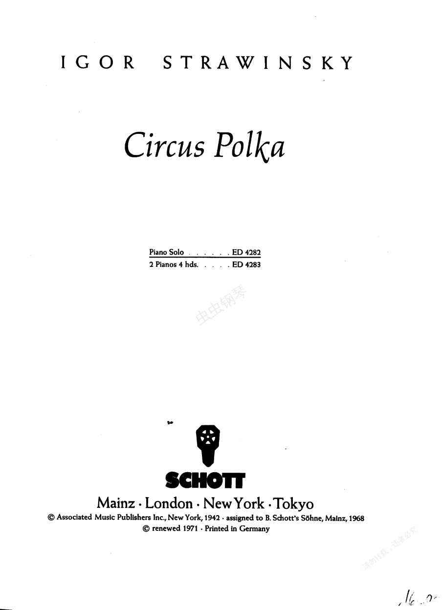 钢琴谱:马戏团波尔卡Circus Polka(Stravinsky Circus Polka 独奏版)