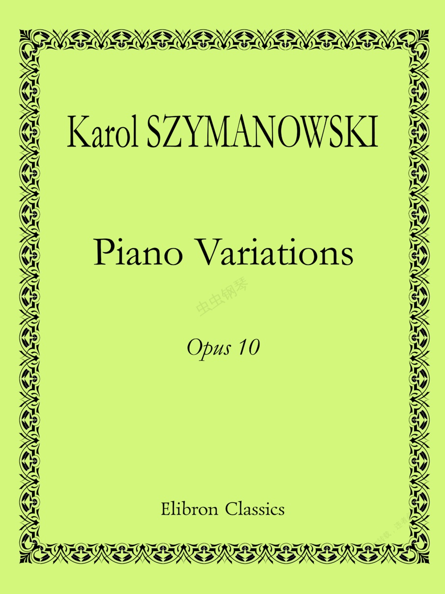 波兰民歌主题变奏曲 on a Folk Theme Op.10《波兰民歌主题变奏曲》 on a Folk Theme Op.10 ,作于1904年,题献给齐格蒙特·诺斯科夫斯基(),于1906年2月6日由海里希·涅高兹()在波兰首演。作品为b小调,由引子、主题、十个变奏和终曲组成。1. 引子,悲痛而自由的行板,b小调,4/4拍。2. 主题,朴素的小行板,4/4拍,是一首b小调的波兰民歌小调。3. 变奏一,稍快的速度,右手为十六分音符三连音,双手为四对六的形式。4. 变奏二,激动的,由右手四分音符和弦和左手八度八分音符三连音组成。5. 变奏三,伤感而略激动的慢板,2/4拍,以切分音为特色。6. 变奏四,激动的甚快板,3/4拍,流畅的十六分音符。7. 变奏五,小行板,2/4拍,三对二形式。8. 变奏六,非常甜美的行板,转入B大调,4/4拍。这是全曲最优美的部分。9. 变奏七,稍快的速度,B大调,右手9/16拍,左手6/16拍。六对九形式。10. 变奏八,葬礼进行曲,转入g小调,3/4拍,沉重的和弦进行,在急速的双手琶音之后进入下一变奏。11. 变奏九,稍快的快板,B大调,4/4拍。流畅的十六分音符六连音,左手间中辅以震音烘托。12. 变奏十和终曲,活泼的快板,B大调,4/4拍。在一片喧闹中结束全曲。