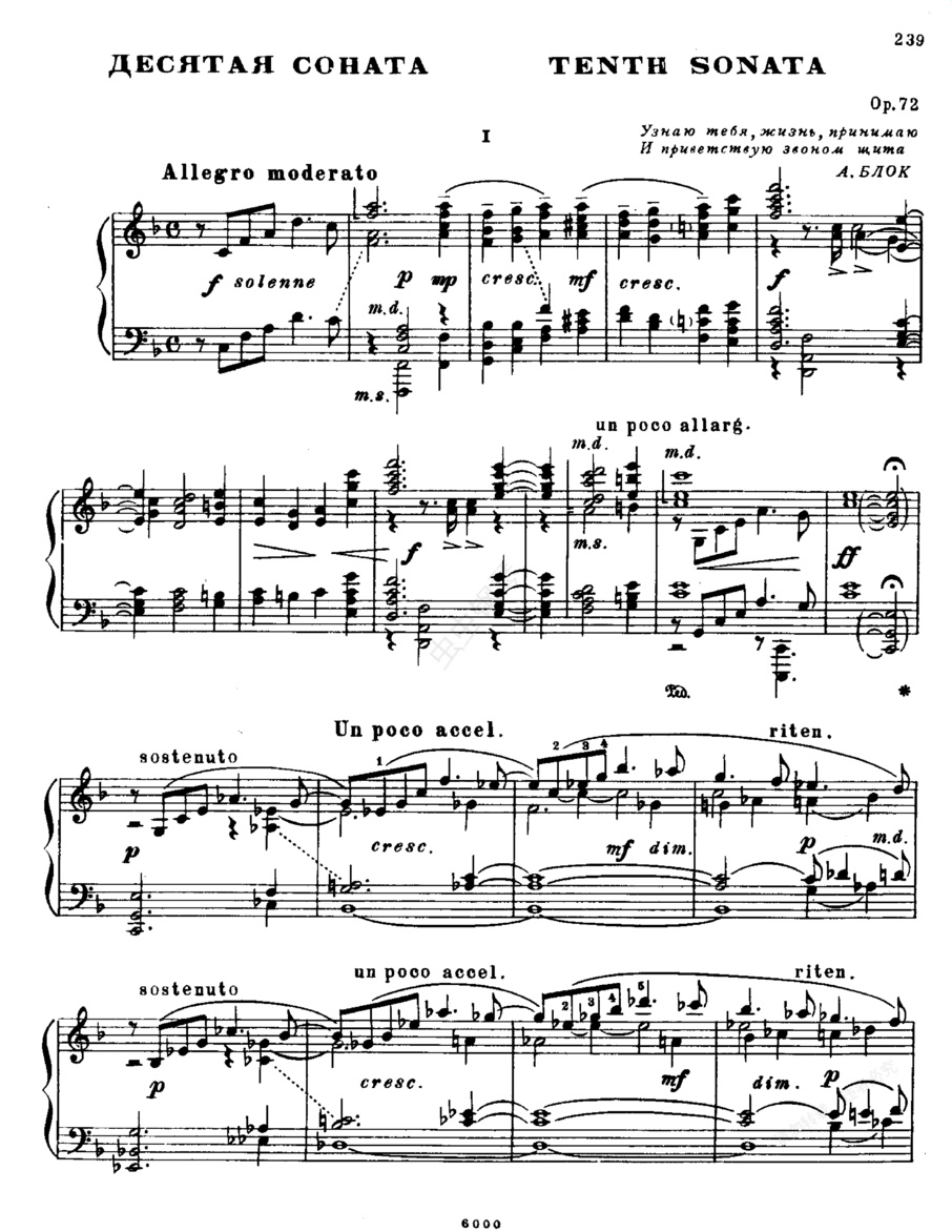 钢琴谱:第十钢琴奏鸣曲 piano Sonata No.10 Op.72