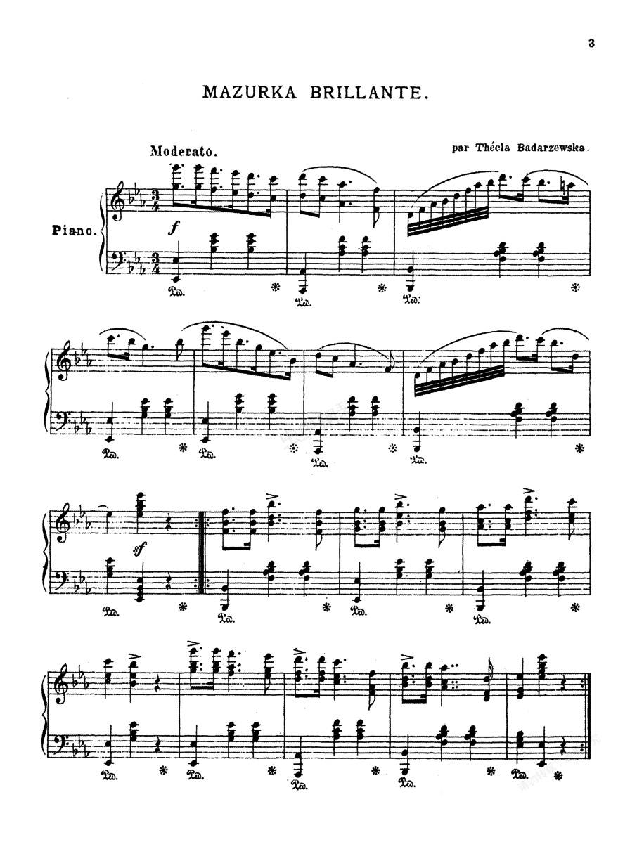 钢琴谱:降E大调玛祖卡 Mazurka in E-flat Major