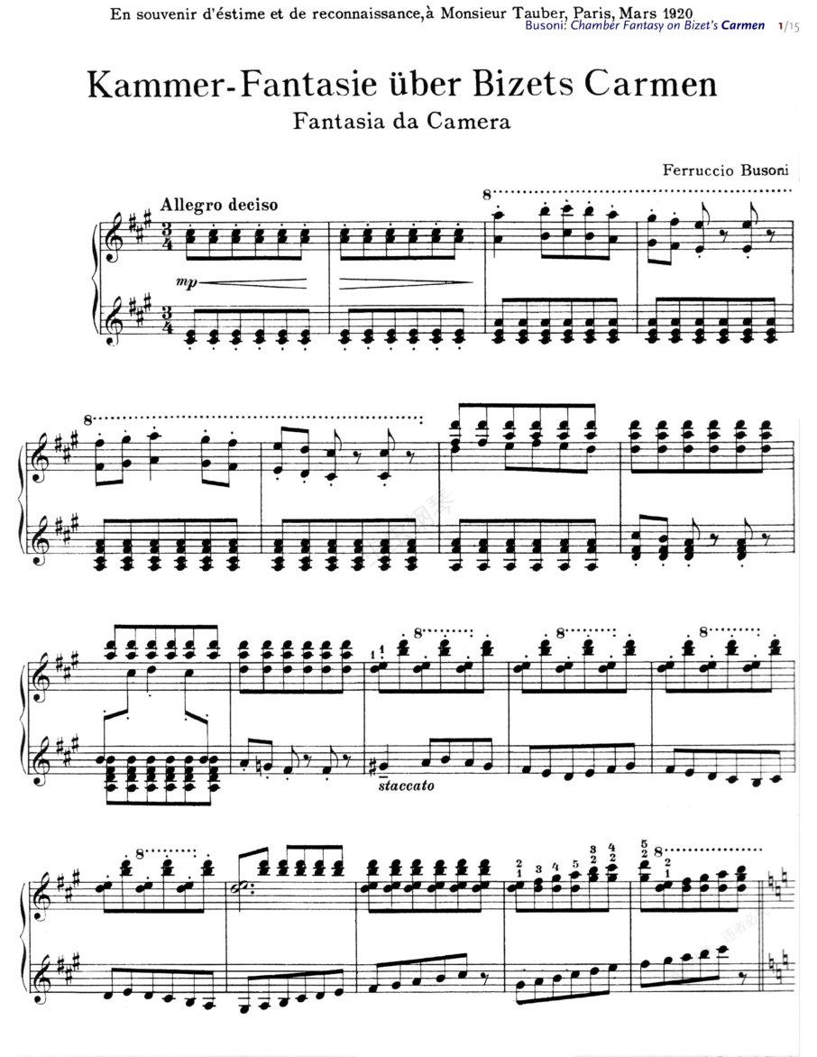 卡门歌剧《卡门》 完成于1874年秋,是比才的最后一部歌剧,也是当今世界上上演率最高的一部歌剧。 梅尔哈克和阿勒维根据梅里芙的同名小说改编。1875年初次演出于巴黎。剧情:烟厂女工卡门是一个漂亮而性格坚强的吉卜赛姑娘。她爱上了军曹霍赛,运用自己罕有的女性魅力使霍塞陷入情网。霍塞不但因此舍弃了原来的情人——温柔而善良的米卡埃拉,而且因放走了与人打架的卡门而被捕入狱,后来甚至与上司祖厄加少校拔刀相见,不得不离开军队,加入卡门所在的走私贩行列。但此时卡门却早已与斗牛士埃斯卡米里奥海誓山盟了。于是导致霍塞与埃斯卡米里奥之间的决斗。决斗中卡门又明显地袒护斗牛士,更使霍塞难以忍受。随即盛大而热烈的斗牛场面开始了,正当卡门为埃斯卡米里奥的胜利而欢呼时,霍塞找到了她。倔强的卡门断然拒绝了他的爱情,最后终于死在霍塞的剑下。 本剧以女工、农民出身的士兵和群众为主人公, 这一点,在那个时代的歌剧作品中是罕见的、可贵的。也许正因为作者的刻意创新,本剧在初演时并不为观众接受,但随着时间的推移,这部作品的艺术价值逐渐得到人们的认可,此后变得长盛不衰。这部歌剧以合唱见长,剧中各种体裁和风格的合唱共有十多部。 歌剧的序曲为A大调,四二拍子,回旋曲式。整部序曲建立在具有尖锐对比的形象之上,以华丽、紧凑、引人入胜的音乐来表现这部歌剧的主要内容。序曲中集中了歌剧内最主要的一些旋律,而且使用明暗对比的效果将歌剧的内容充分地表现了出来,主题选自歌剧最后一幕中斗牛士上场时的音乐。 本剧的序曲是音乐会上经常单独演奏的曲目。第一幕中换班的士兵到来时,一群孩子在前面模仿着士兵的步伐开路。孩子们在轻快的2/4拍子,d小调上,唱着笛鼓进行曲《我们和士兵在一起》。在这一幕塑造了吉卜赛姑娘卡门热情、奔放、富于魅力的形象。主人公卡门的著名咏叹调《爱情像一只自由的小鸟》是十分深入人心的旋律,行板、d小调转F大调、2/4拍子,充分表现出卡门豪爽、奔放而富有神秘魅力的形象。 卡门被逮捕后,龙骑兵中尉苏尼哈亲自审问她,可她却漫不经心地哼起了一支小调,此曲形象地表现出卡门放荡不羁的性格。还是这一幕中,卡门在引诱唐·豪塞时,又唱出另一个著名的咏叹调,为快板、3/8 拍子,是一首西班牙舞蹈节奏的迷人曲子,旋律热情而又有几分野气 , 进一步刻画了卡门性格中的直率和泼辣。 第一幕与第二幕之间的间奏曲也十分有名, 选自第二幕中 唐·豪塞的咏叹调《阿尔卡拉龙骑兵》,大管以中庸的快板奏出洒脱而富活力的主旋律。第二幕中还有一段吉普赛风格的音乐, 表现的是两个吉普赛女郎在酒店跳舞时纵情欢乐的场面,跳跃性的节奏和隐约的人声烘托出酒店里喧闹的气氛。第二幕与第三幕之间的间奏曲是一段轻柔、优美的旋律,长笛与竖琴交相辉映,饱含脉脉的温情。 第三幕中著名的 《斗牛士之歌》,是埃斯卡米里奥为感谢欢迎和崇拜他的民众而唱的一首歌曲。这首节奏有力、声音雄壮的凯旋进行曲,成功地塑造了这位百战百胜的勇敢斗牛士的高大形象。 第四幕的结尾,正象柴科夫斯基所说的那样: “当我看这最后一场时,总是不能止住泪水,一方面是观众看见斗牛士时的狂呼,另一方面却是两个主人公最终死亡的可怕悲剧结尾,这两个人不幸的命运使他们历尽辛酸之后还是走向了不可避免的结局。” 剧中还有一段脍炙人口的西班牙风格舞曲“阿拉贡”, 也是音乐会上经常单独演出的曲目。《卡门序曲》,是该歌剧中最著名的器乐段落,常被人们称为“斗牛士进行曲”,常单独演奏。一般的歌剧序曲都是用交响方式缩写或提示歌剧内容,这首序曲结构简单,仅仅描写了欢乐气氛和剧中次要人物斗牛士的英勇形象。开始呈示的快板主题选自歌剧第四幕斗牛士上场时的音乐,生气勃勃、充满活力,表现了斗牛士英武潇洒的形象和斗牛场内兴奋活跃的气氛。由于它带有进行曲特点,故又称《斗牛士进行曲》。接下来乐曲从A大调转为F大调,出现第二幕中《斗牛士之歌》的副歌音调,具有凯旋进行曲特点,坚定有力的节奏和威武雄壮的曲调表现了斗牛士的飒爽英姿。反复时提高八度,使情绪显得更为高昂。之后再现第一部分主题。结束部分出现卡门的音乐动机,带有不祥的气氛,在弦乐有力的震音背景下,以大提琴为主的乐器奏曲悲剧性主题,暗示悲剧性的结局,最后在强烈的不和协音响中结束。