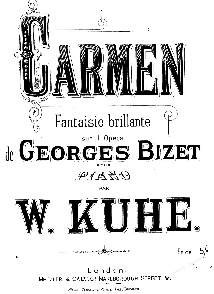卡门歌剧《卡门》 完成于1874年秋,是比才的最后一部歌剧,也是当今世界上上演率最高的一部歌剧。 梅尔哈克和阿勒维根据梅里芙的同名小说改编。1875年初次演出于巴黎。剧情:烟厂女工卡门是一个漂亮而性格坚强的吉卜赛姑娘。她爱上了军曹霍赛,运用自己罕有的女性魅力使霍塞陷入情网。霍塞不但因此舍弃了原来的情人——温柔而善良的米卡埃拉,而且因放走了与人打架的卡门而被捕入狱,后来甚至与上司祖厄加少校拔刀相见,不得不离开军队,加入卡门所在的走私贩行列。但此时卡门却早已与斗牛士埃斯卡米里奥海誓山盟了。于是导致霍塞与埃斯卡米里奥之间的决斗。决斗中卡门又明显地袒护斗牛士,更使霍塞难以忍受。随即盛大而热烈的斗牛场面开始了,正当卡门为埃斯卡米里奥的胜利而欢呼时,霍塞找到了她。倔强的卡门断然拒绝了他的爱情,最后终于死在霍塞的剑下。 本剧以女工、农民出身的士兵和群众为主人公, 这一点,在那个时代的歌剧作品中是罕见的、可贵的。也许正因为作者的刻意创新,本剧在初演时并不为观众接受,但随着时间的推移,这部作品的艺术价值逐渐得到人们的认可,此后变得长盛不衰。这部歌剧以合唱见长,剧中各种体裁和风格的合唱共有十多部。 歌剧的序曲为A大调,四二拍子,回旋曲式。整部序曲建立在具有尖锐对比的形象之上,以华丽、紧凑、引人入胜的音乐来表现这部歌剧的主要内容。序曲中集中了歌剧内最主要的一些旋律,而且使用明暗对比的效果将歌剧的内容充分地表现了出来,主题选自歌剧最后一幕中斗牛士上场时的音乐。 本剧的序曲是音乐会上经常单独演奏的曲目。第一幕中换班的士兵到来时,一群孩子在前面模仿着士兵的步伐开路。孩子们在轻快的2/4拍子,d小调上,唱着笛鼓进行曲《我们和士兵在一起》。在这一幕塑造了吉卜赛姑娘卡门热情、奔放、富于魅力的形象。主人公卡门的著名咏叹调《爱情像一只自由的小鸟》是十分深入人心的旋律,行板、d小调转F大调、2/4拍子,充分表现出卡门豪爽、奔放而富有神秘魅力的形象。 卡门被逮捕后,龙骑兵中尉苏尼哈亲自审问她,可她却漫不经心地哼起了一支小调,此曲形象地表现出卡门放荡不羁的性格。还是这一幕中,卡门在引诱唐·豪塞时,又唱出另一个著名的咏叹调,为快板、3/8 拍子,是一首西班牙舞蹈节奏的迷人曲子,旋律热情而又有几分野气 , 进一步刻画了卡门性格中的直率和泼辣。 第一幕与第二幕之间的间奏曲也十分有名, 选自第二幕中 唐·豪塞的咏叹调《阿尔卡拉龙骑兵》,大管以中庸的快板奏出洒脱而富活力的主旋律。第二幕中还有一段吉普赛风格的音乐, 表现的是两个吉普赛女郎在酒店跳舞时纵情欢乐的场面,跳跃性的节奏和隐约的人声烘托出酒店里喧闹的气氛。第二幕与第三幕之间的间奏曲是一段轻柔、优美的旋律,长笛与竖琴交相辉映,饱含脉脉的温情。 第三幕中著名的 《斗牛士之歌》,是埃斯卡米里奥为感谢欢迎和崇拜他的民众而唱的一首歌曲。这首节奏有力、声音雄壮的凯旋进行曲,成功地塑造了这位百战百胜的勇敢斗牛士的高大形象。 第四幕的结尾,正象柴科夫斯基所说的那样: “当我看这最后一场时,总是不能止住泪水,一方面是观众看见斗牛士时的狂呼,另一方面却是两个主人公最终死亡的可怕悲剧结尾,这两个人不幸的命运使他们历尽辛酸之后还是走向了不可避免的结局。” 剧中还有一段脍炙人口的西班牙风格舞曲“阿拉贡”, 也是音乐会上经常单独演出的曲目。《卡门序曲》,是该歌剧中最著名的器乐段落,常被人们称为“斗牛士进行曲”,常单独演奏。一般的歌剧序曲都是用交响方式缩写或提示歌剧内容,这首序曲结构简单,仅仅描写了欢乐气氛和剧中次要人物斗牛士的英勇形象。开始呈示的快板主题选自歌剧第四幕斗牛士上场时的音乐,生气勃勃、充满活力,表现了斗牛士英武潇洒的形象和斗牛场内兴奋活跃的气氛。由于它带有进行曲特点,故又称《斗牛士进行曲》。接下来乐曲从A大调转为F大调,出现第二幕中《斗牛士之歌》的副歌音调,具有凯旋进行曲特点,坚定有力的节奏和威武雄壮的曲调表现了斗牛士的飒爽英姿。反复时提高八度,使情绪显得更为高昂。之后再现第一部分主题。结束部分出现卡门的音乐动机,带有不祥的气氛,在弦乐有力的震音背景下,以大提琴为主的乐器奏曲悲剧性主题,暗示悲剧性的结局,最后在强烈的不和协音响中结束。