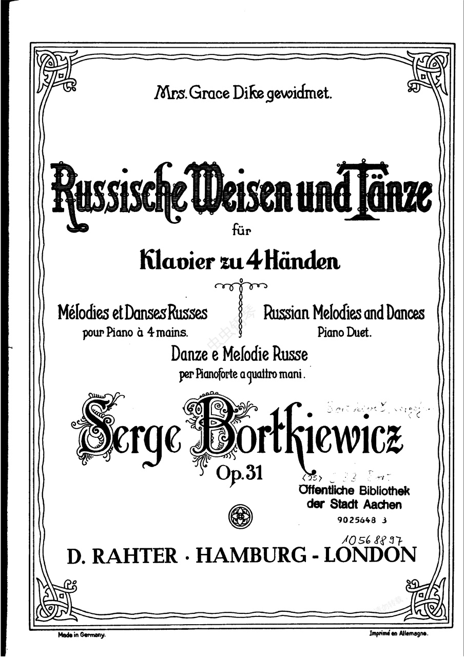 钢琴谱:俄罗斯旋律与舞曲 Russian Melodies and Dances Op.31 - 四手联弹(Bortkiewicz op31-1 Russian Melodies and Dances (Piano Duo))