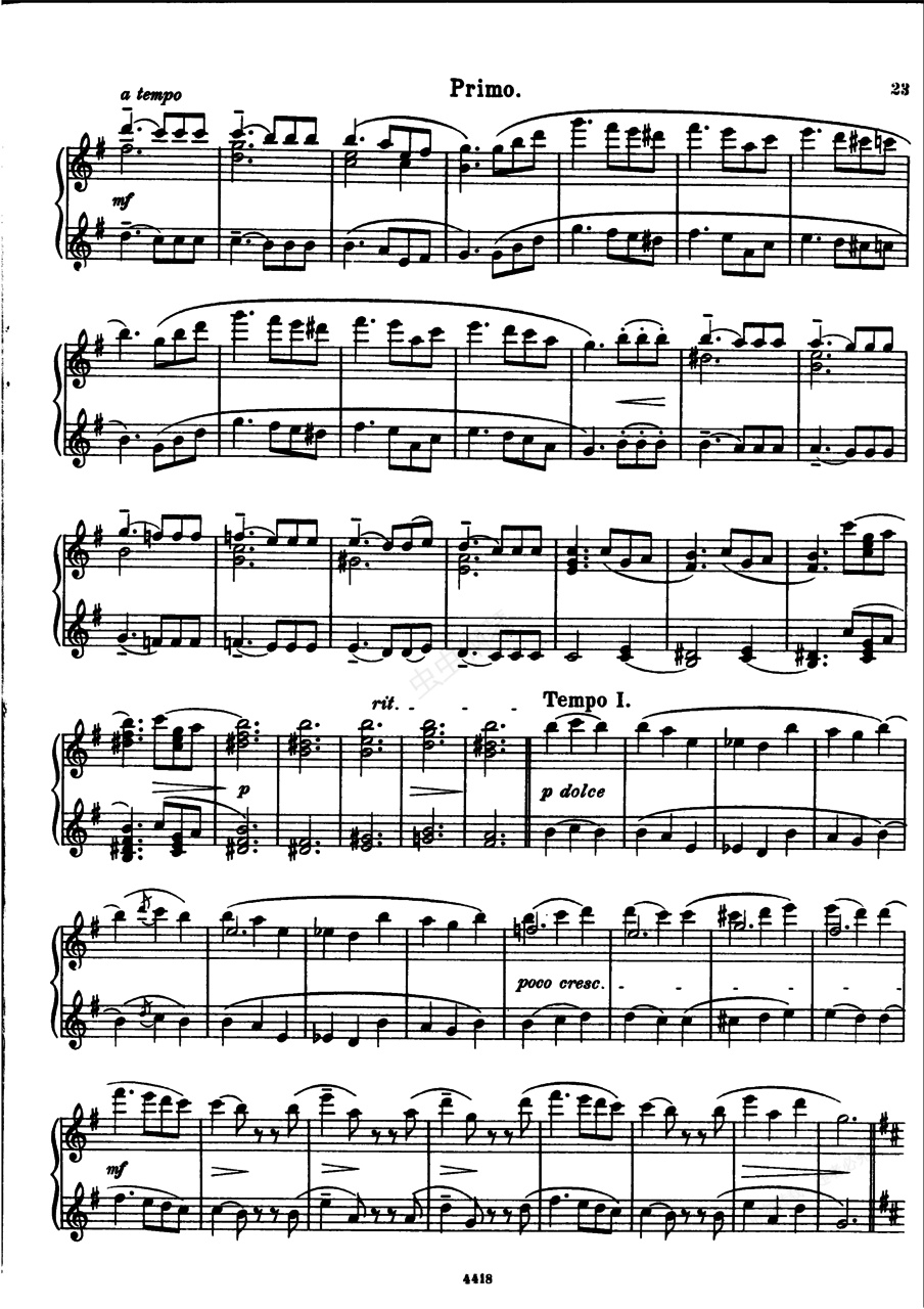 钢琴谱:俄罗斯旋律与舞曲 Russian Melodies and Dances Op.31 - 四手联弹(Bortkiewicz op31-2 Russian Melodies and Dances (Piano Duo))