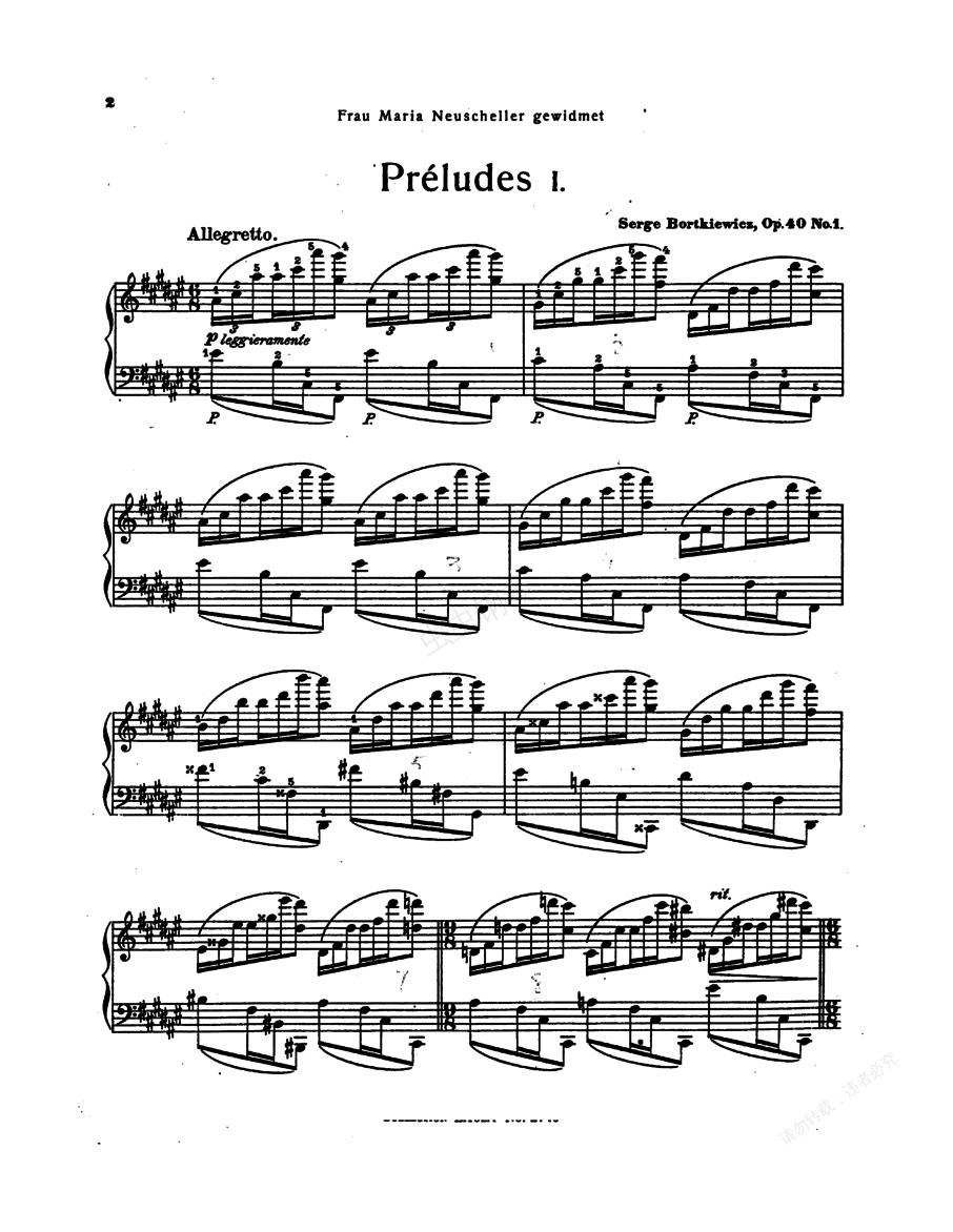 钢琴谱:前奏曲Prelude op40(Bortkiewicz op40n1 Prelude)