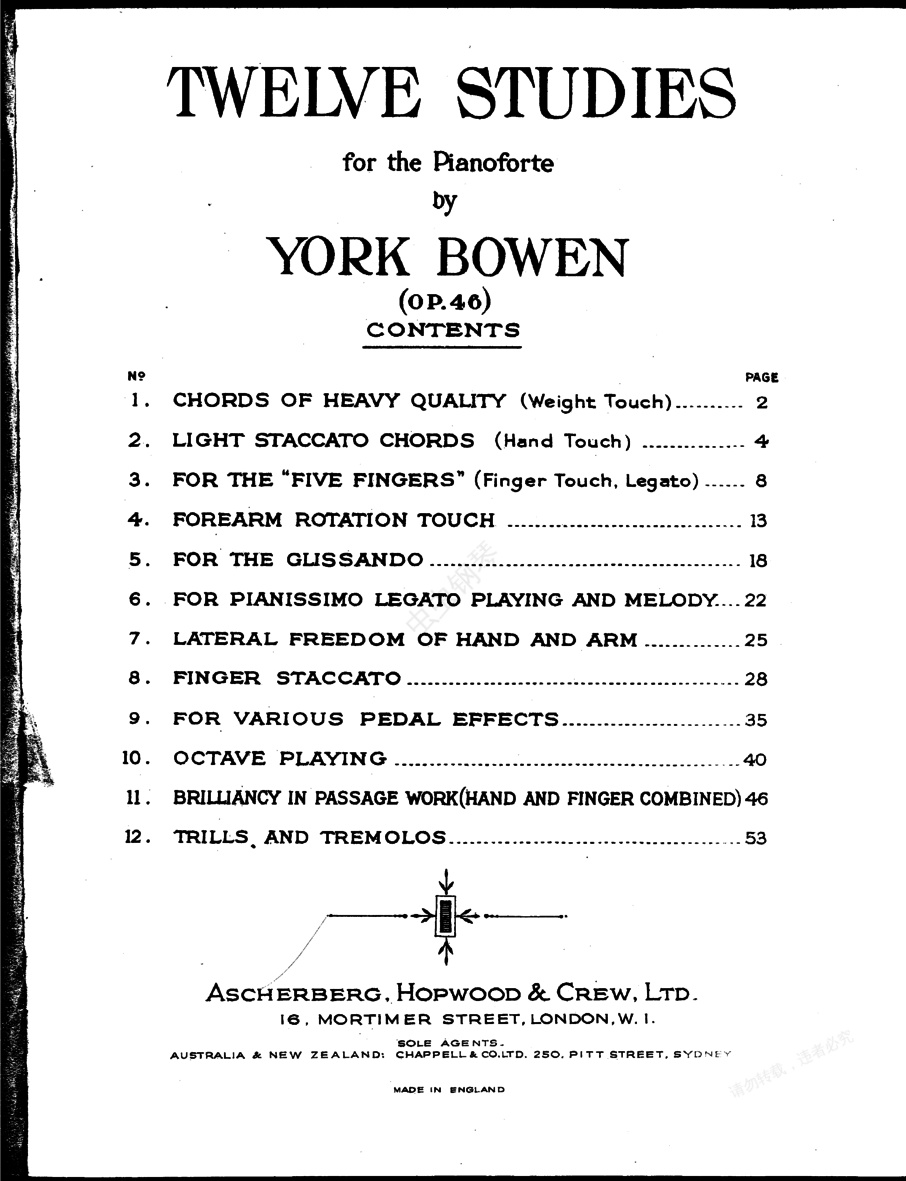 钢琴谱:十二首钢琴练习曲Twelve Studies Op.46