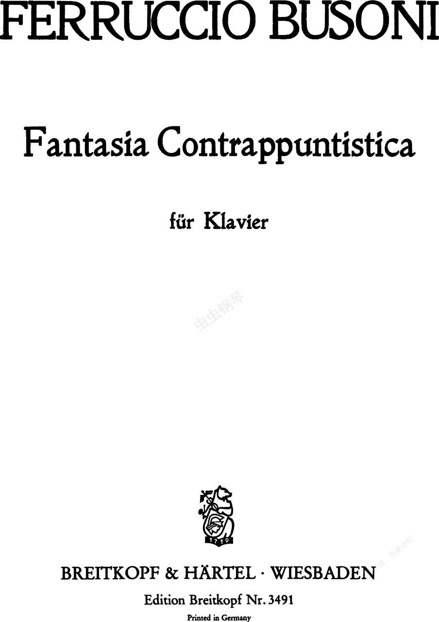 对位幻想曲 BV 256《对位幻想曲》 BV 256 ,根据巴赫生前未完成的《赋格的艺术》中最后一首(第十四对位)而作,作于1910年。这是布索尼最伟大、最大型的钢琴独奏作品之一,其中每个音符都体现出布索尼对巴赫崇高的敬意。布索尼于1909年开始编订巴赫的《赋格的艺术》,同年,他受到新结识的朋友伯恩哈德·齐恩( Ziehn)所提出的“和声新理论”的启发,于是他萌发了续写这部未完成作品的念头。1910年3月,他完成了这首作品的初稿,题名为“大赋格” Fuge ,经修订后于同年6月正式出版,并更名为“对位幻想曲”。作为巴赫《赋格的艺术》的续篇,它巧妙的构思和钢琴技术的展现远远超出了巴赫年代的视野,是典型的布索尼风格。作品为d小调,以“”为动机,共分成十二部分:1. 圣咏前奏曲 2. 第一赋格 Fuga I3. 第二赋格 Fuga II4. 第三赋格 Fuga III 5. 间奏曲. 第一变奏 17. 第二变奏 2 8. 第三变奏 3 9. 华彩段. 第四赋格 Fuga IV 11. 圣咏. 结尾