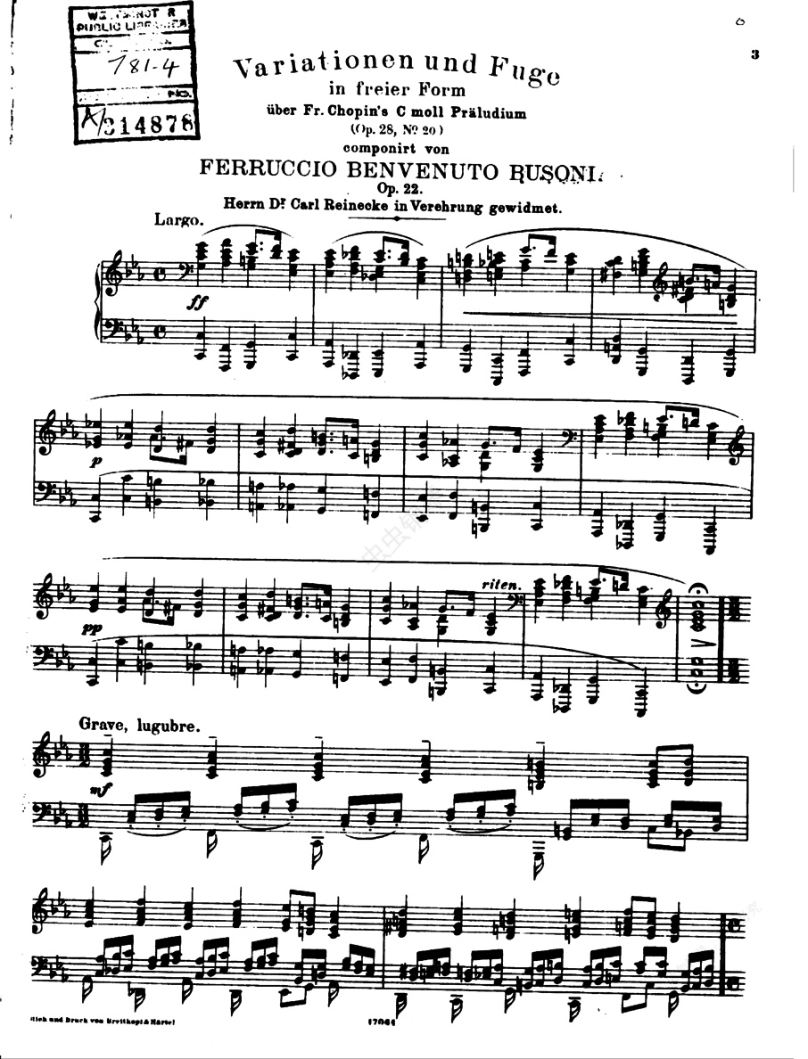 钢琴谱:根据肖邦前奏曲而作的变奏曲与赋格Variations and Fugue on Chopin's prelude in c minor op22