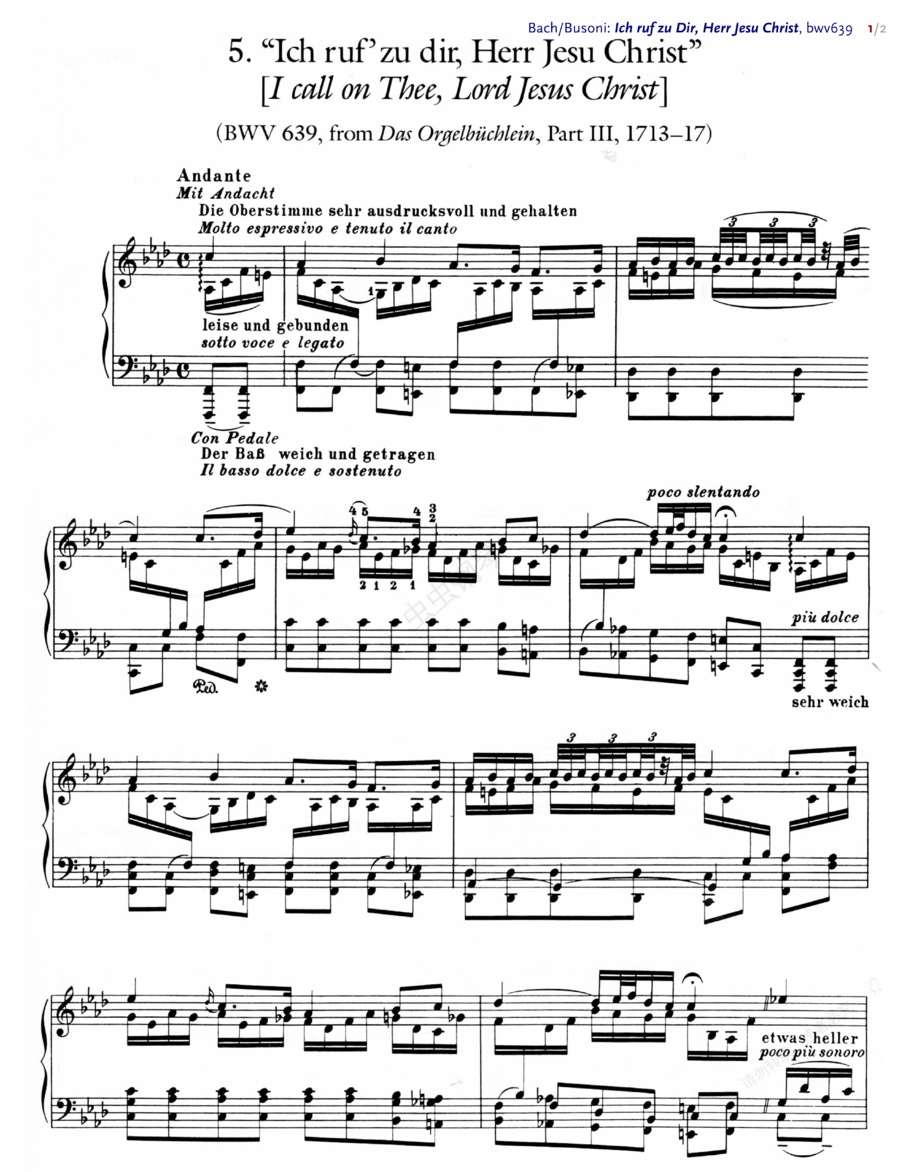 钢琴谱:------改编巴赫作品集------(Bach-Busoni bwv639 Ich ruf zu Dir)