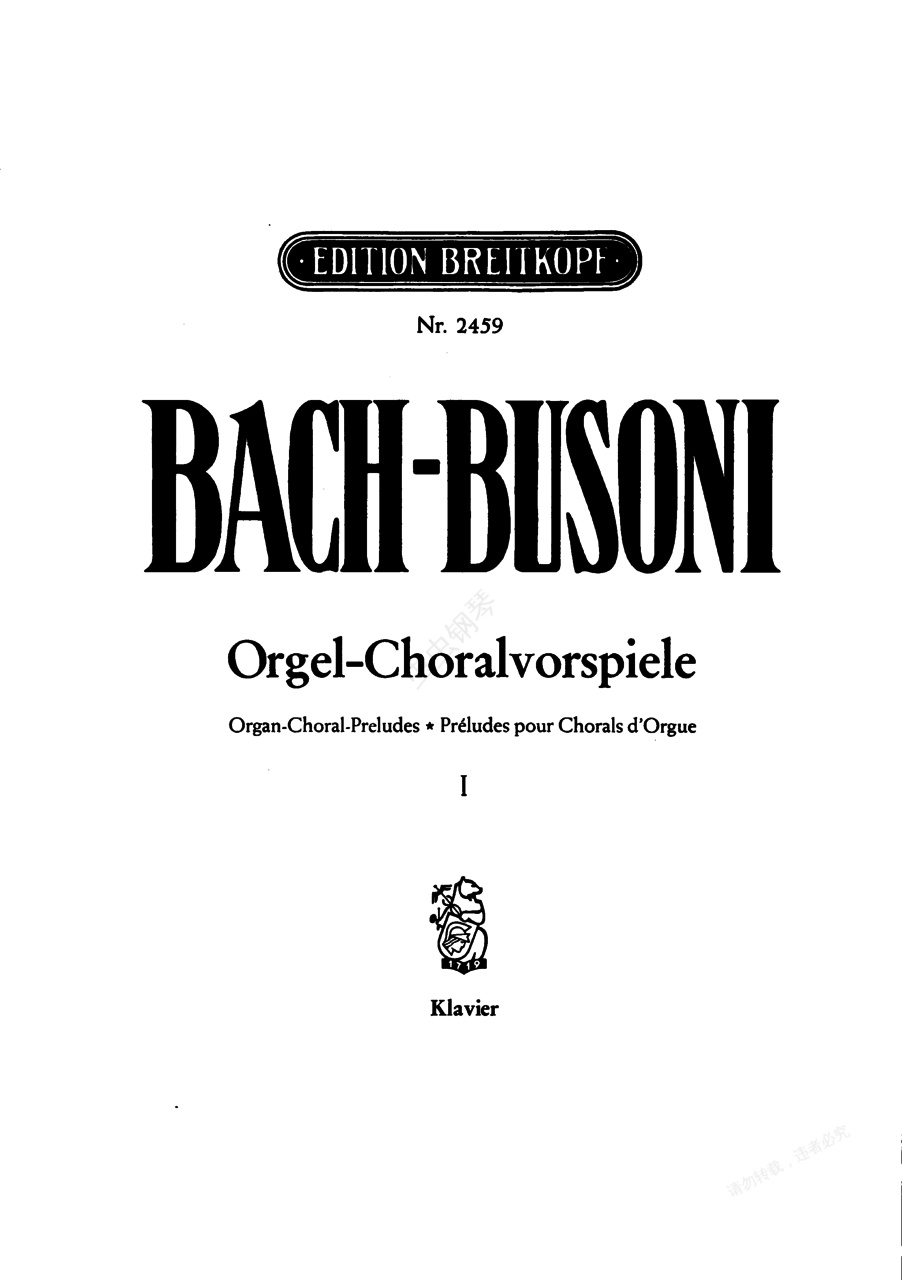 钢琴谱:------改编巴赫作品集------(Bach-Busoni Chorale Preludes, book 1)