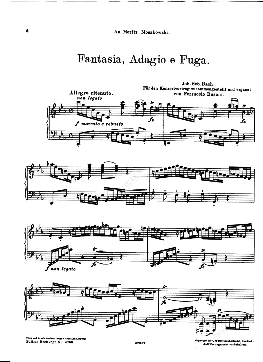 钢琴谱:------改编巴赫作品集------(Bach-Busoni Fantasia, Adagio e Fuga)
