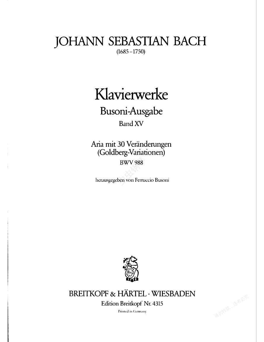 钢琴谱:------改编巴赫作品集------(Bach-Busoni Goldberg Variations)
