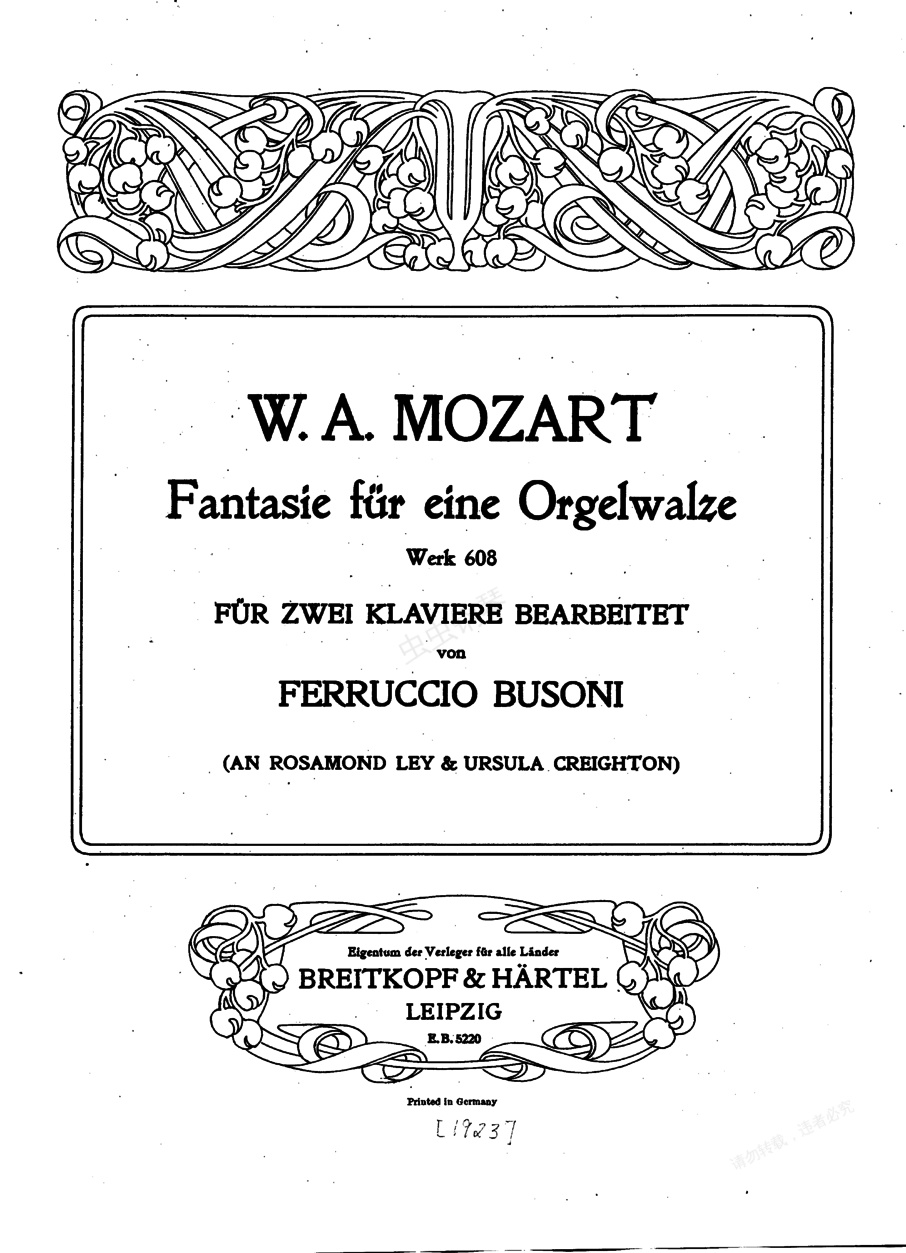 钢琴谱:------改编莫扎特作品集------(Mozart-Busoni Fantasy on an Organ Waltz (two pianos))