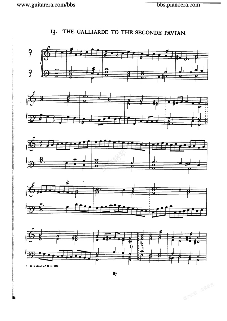 钢琴谱:第二加亚尔德舞曲 The Galliarde to The Seconde Pavian