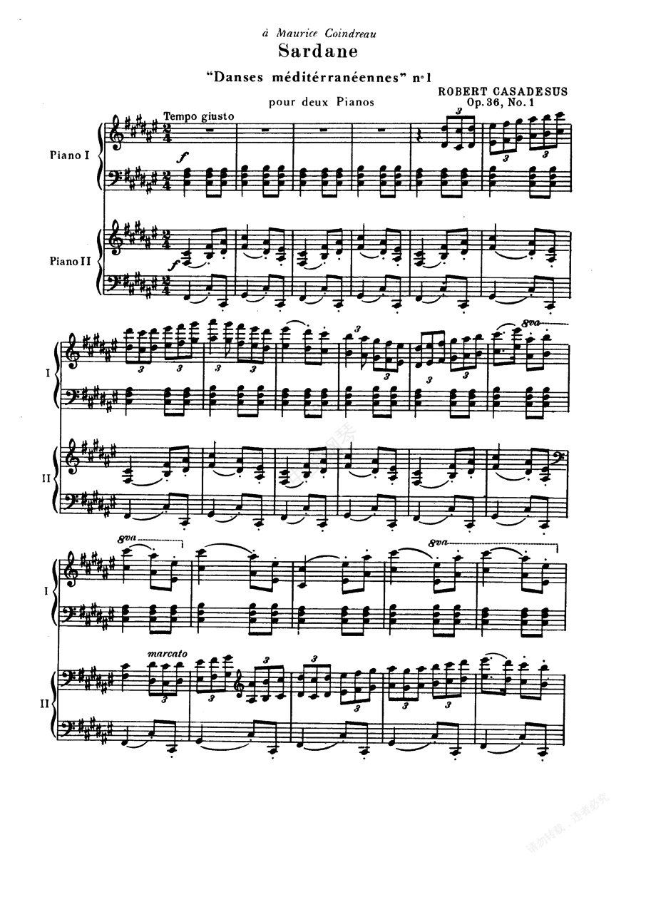 钢琴谱:3首地中海舞曲 3 Mediterranean Dances Op.36 - 双钢琴(Casadesus op36n1 Danses Mediterraneennes — Sardanes (two pianos))