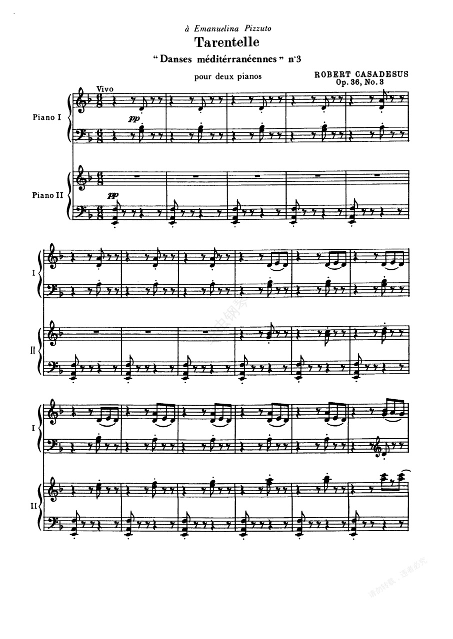 钢琴谱:3首地中海舞曲 3 Mediterranean Dances Op.36 - 双钢琴(Casadesus op36n3 Danses Mediterraneennes — Tarantelle (two pianos))
