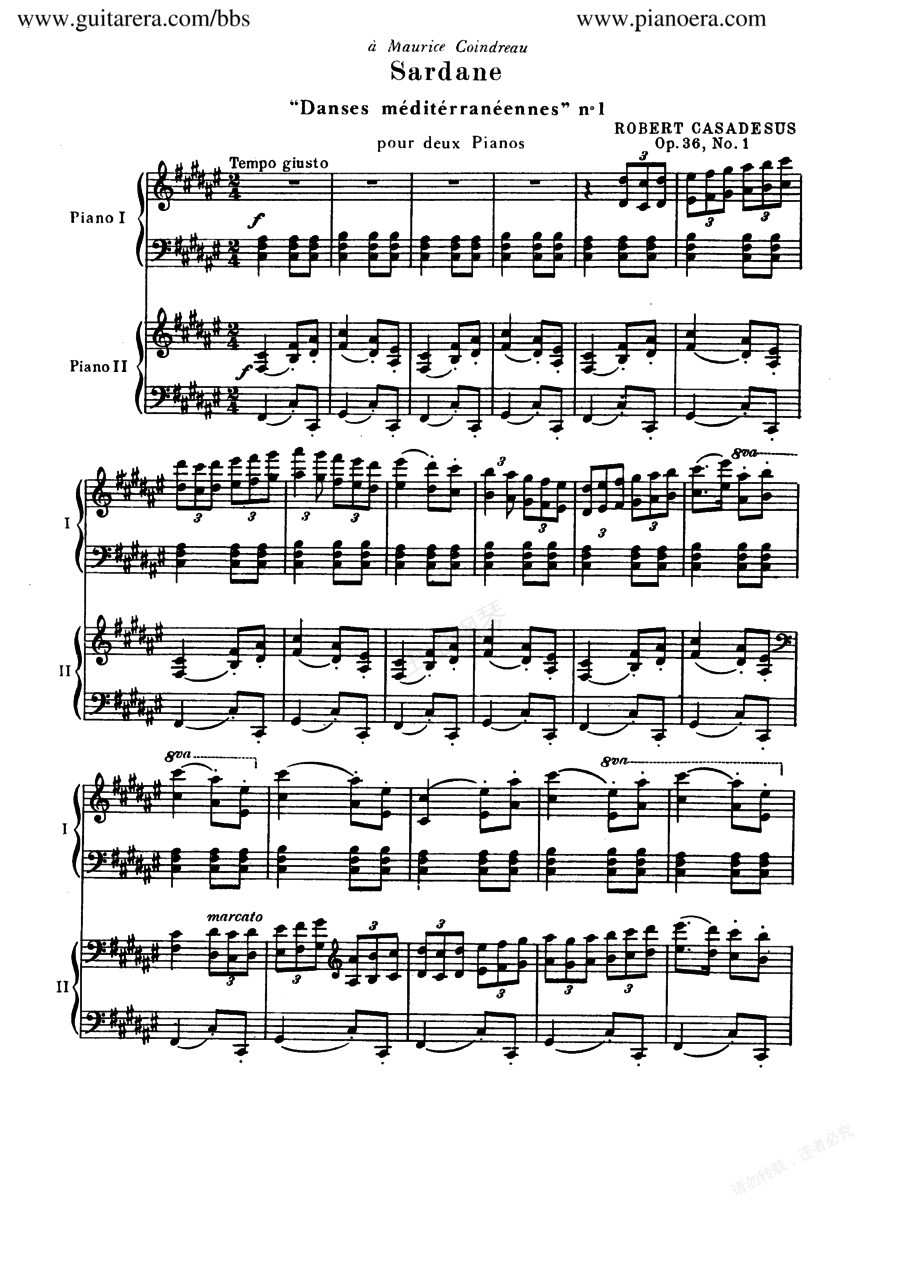 钢琴谱:3首地中海舞曲 3 Mediterranean Dances Op.36 - 双钢琴(Casadesus - Trois Danses Méditerranéennes Op.36 - 2 Pianos)