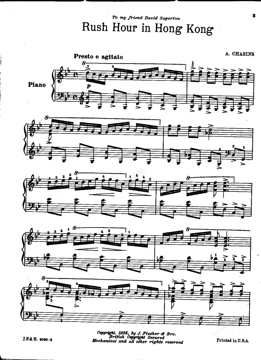 钢琴谱:香港尖峰时刻 Rush Hour in Hong Kong - 选自《三首中国风格小品》(Chasins (1925) Rush Hour in Hong Kong)
