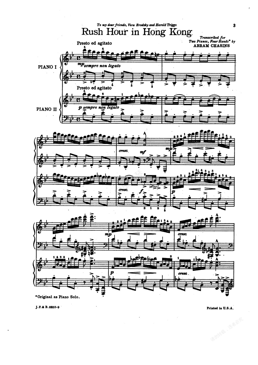 钢琴谱:香港尖峰时刻 Rush Hour in Hong Kong - 选自《三首中国风格小品》(Chasins (1925) Rush Hour in Hong Kong (two pianos)双钢琴版)