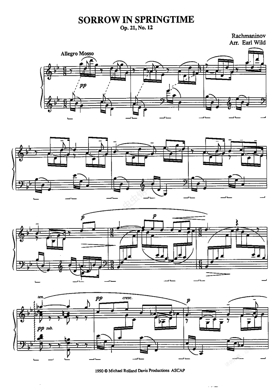 钢琴谱:改编拉赫玛尼诺夫作品集wild rachmaninoff(wild_rachmaninoff op21 no12-sorrow)
