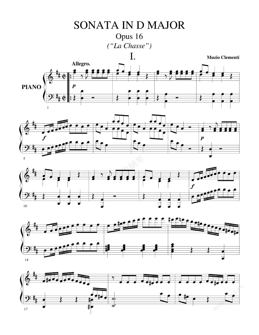 钢琴谱:奏鸣曲集(Clementi op16 Sonata in D)