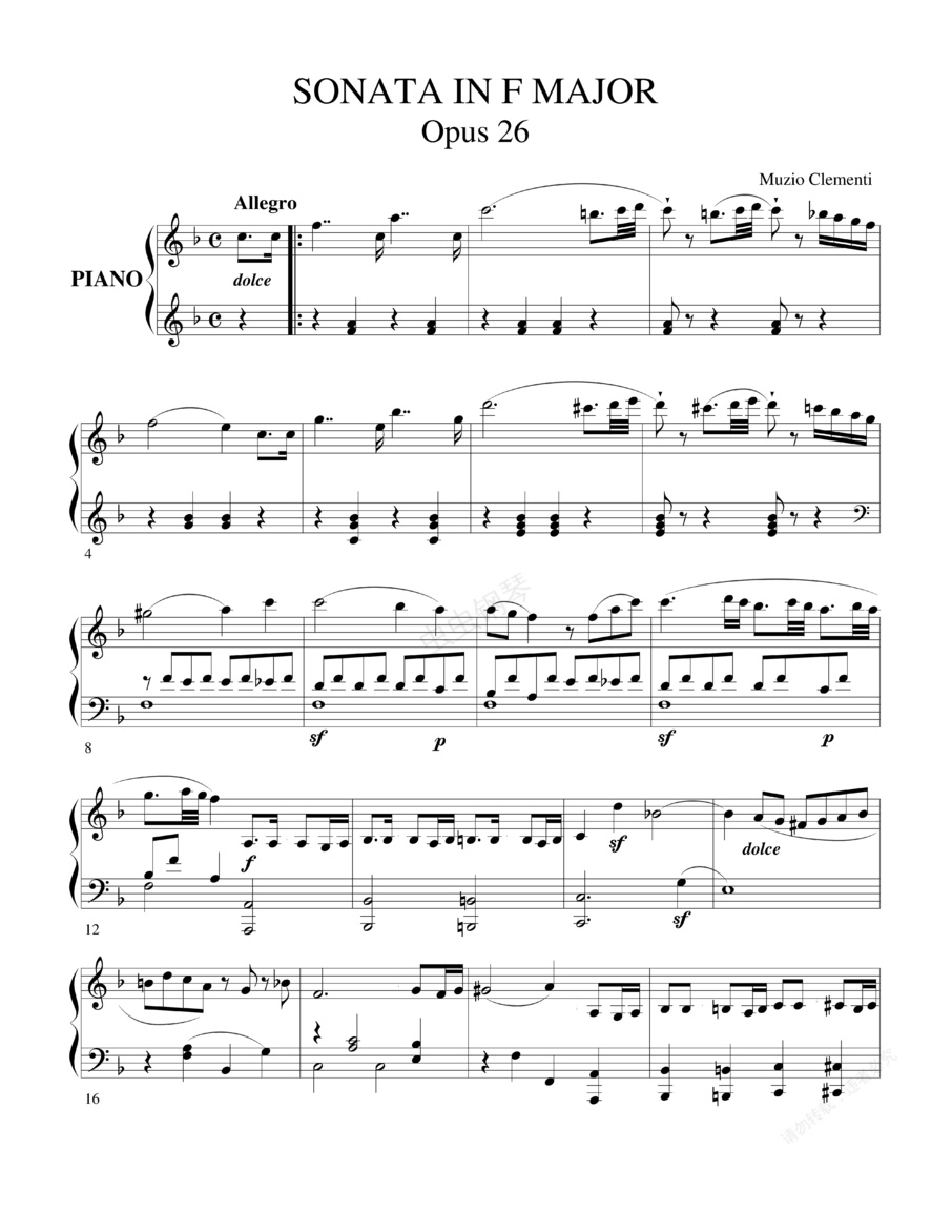 钢琴谱:奏鸣曲集(Clementi op26 Sonata in F)