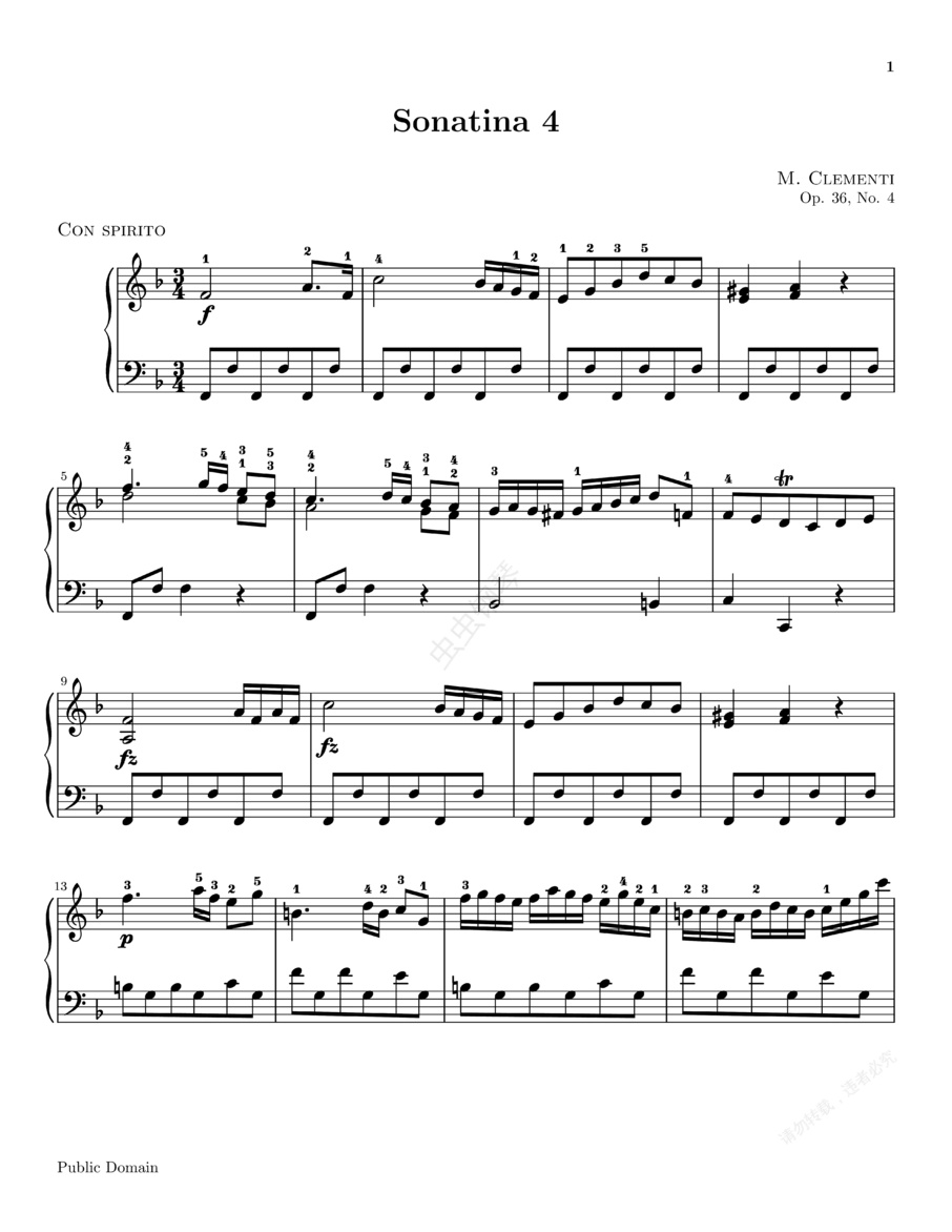 钢琴谱:奏鸣曲集(Clementi op36n4 Sonatina #4)