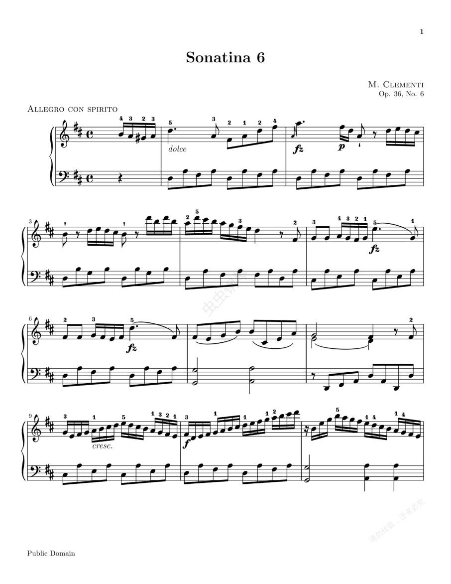 钢琴谱:奏鸣曲集(Clementi op36n6 Sonatina #6)