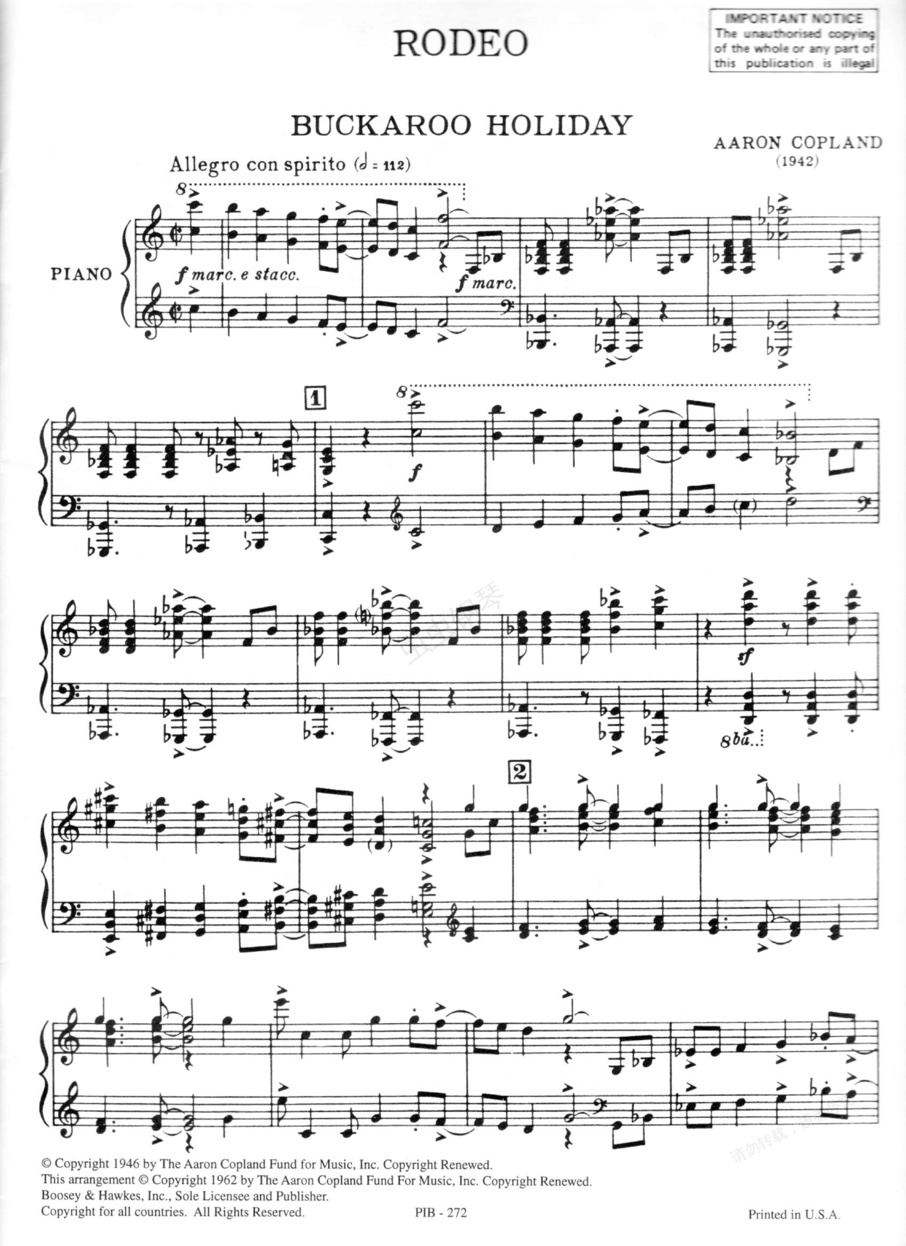 钢琴谱:芭蕾舞Rodeo Ballet(Copland Rodeo Ballet — Buckaroo Holiday)